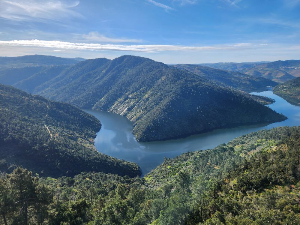 Stopping at the Mirador del Salto (Spanish now – no more Portuguese!), we take a few minutes to breath in the fresh air and take in the stunning view across the Douro (now spelled Deuro). We also make use of a gazebo and picnic bench to have our dessert of expensive pastel de nata.