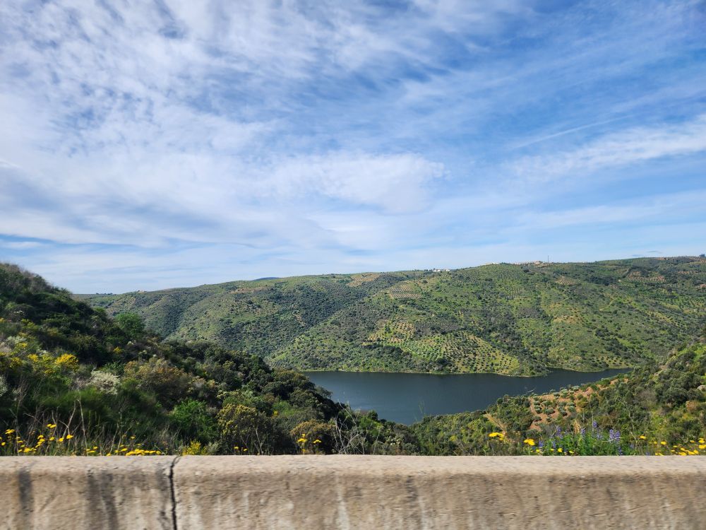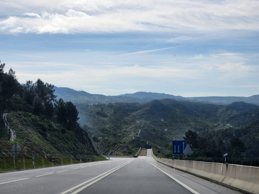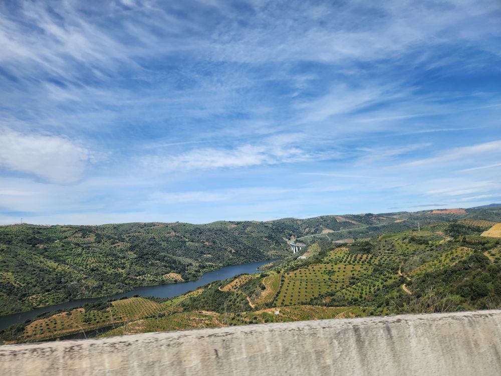 Reversing our course, we make it out the one lane road without any oncoming traffic – phew – and continue on our journey toward Spain. Just because we were looking at Spain from the Miradouro doesn’t mean we are close! We still have about 30 minutes of driving before we cross the border.