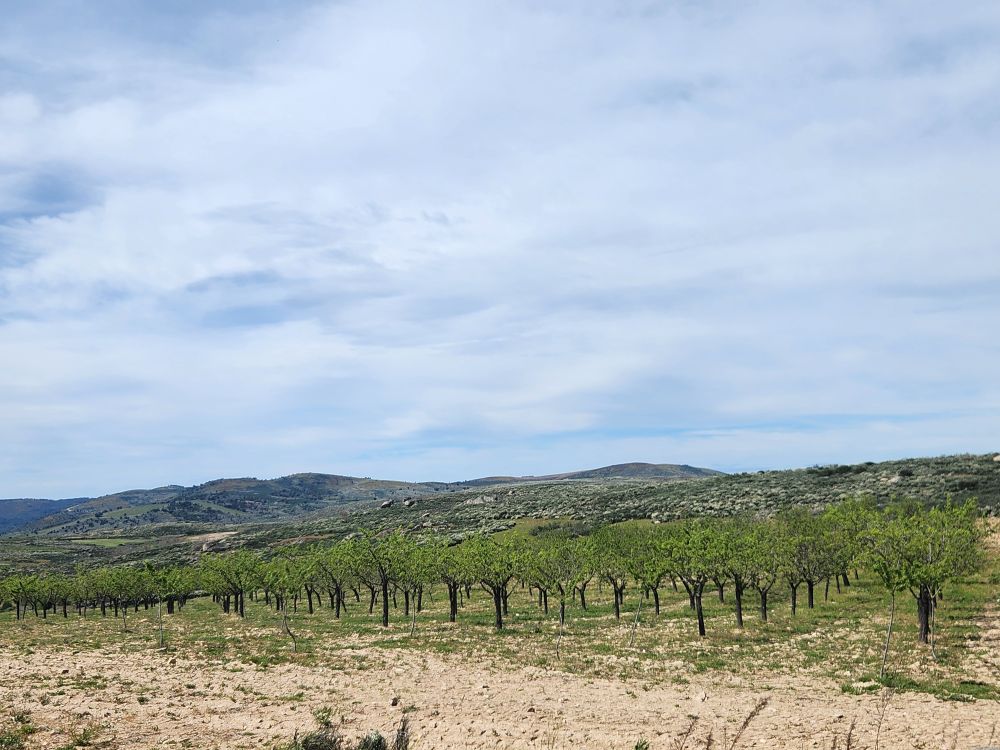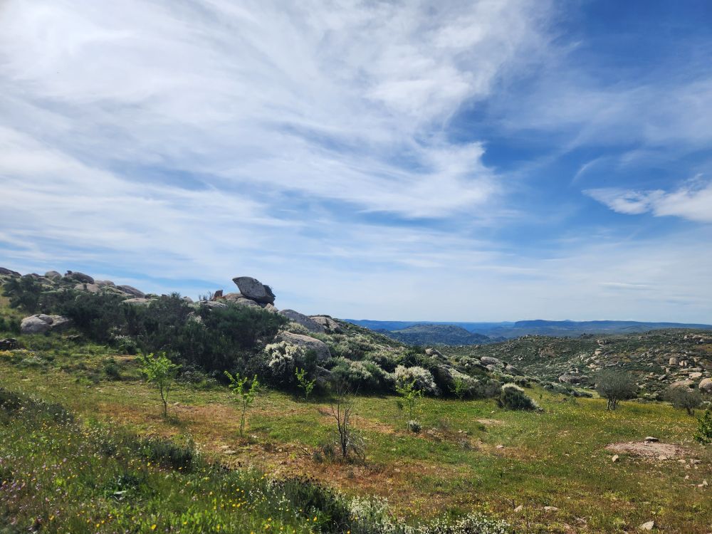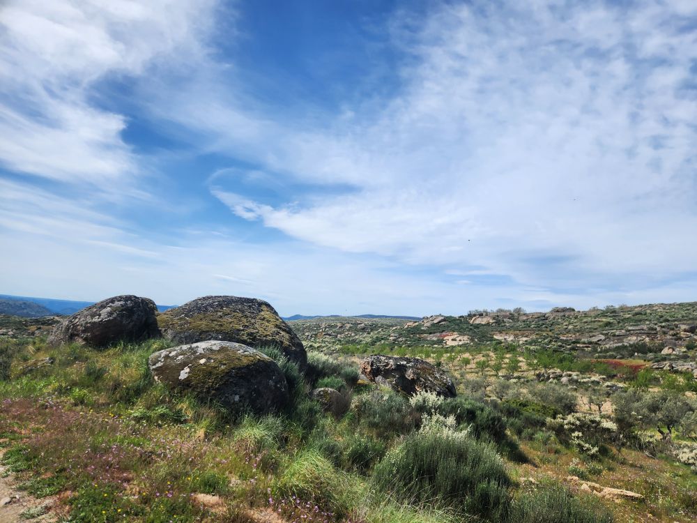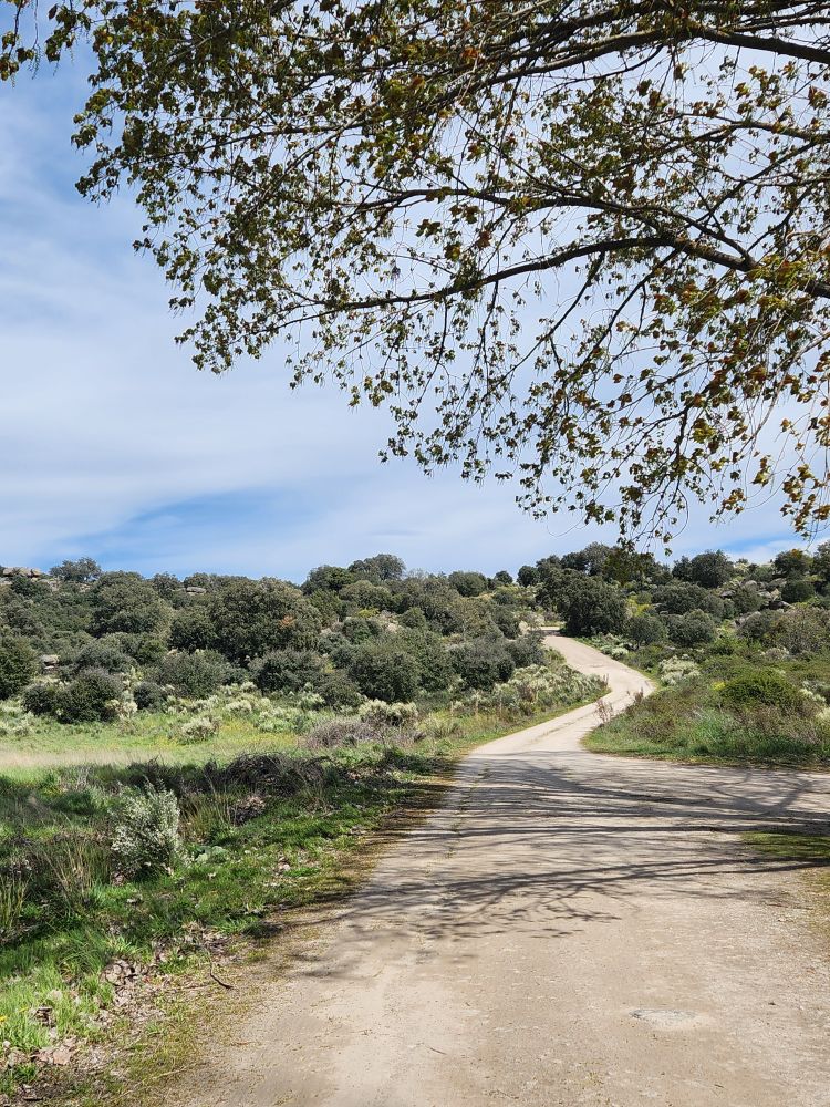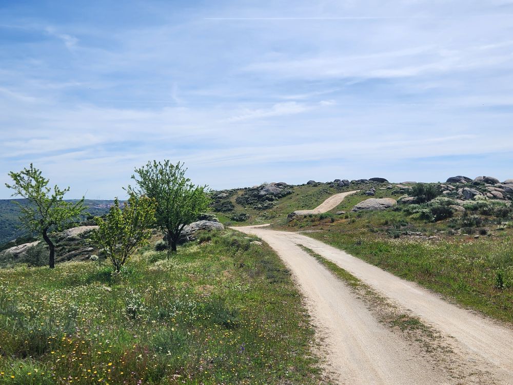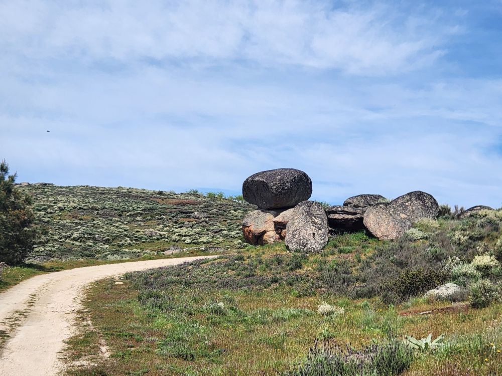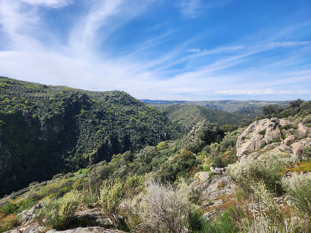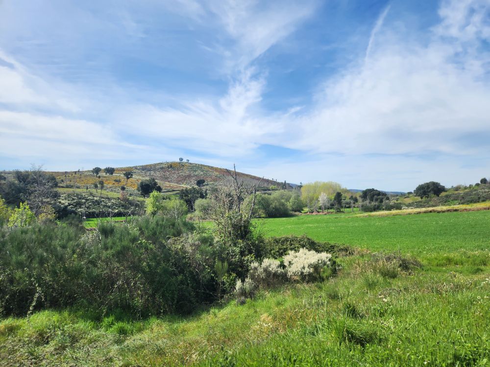 Bags dropped, we head out into the wilds of the region looking for the Pozo de los Humos waterfalls. We had already marked them on the map from AllTrails, and our sweet desk clerk had shown us where to go – so following a ballpoint pen line on the map, we head off through Masueco and Santa Cruz (little teeny towns) and out into farmland. Of course the GPS is trying to send us down these small, narrow dirt roads, but we are following hotel lady’s drawn in map coz that seems the most prudent. Even though it does send us through Pereña de la Ribera, which is another teeny little town with narrow cobblestone lanes and treacherous corners – but at least we are on paved roads for a longer time. Until……we aren’t!