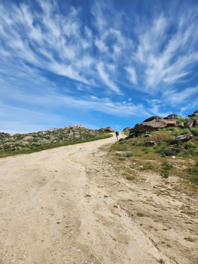 Finally arriving at the parking area, we grab our bags and head off down the dirt road toward the viewing area. It is another 2K walking this time through scrub and rocky terrain – beautiful and peaceful and gorgeous – and we are basically all alone in our hike.