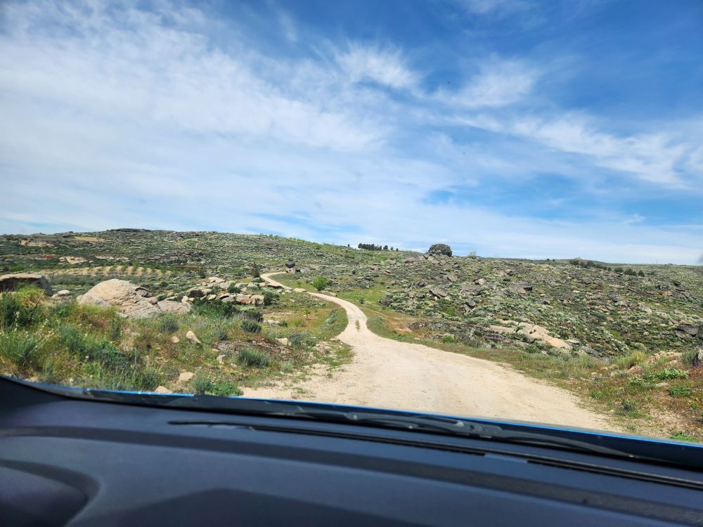 After about an hour and a half we reach the turn off for the Carrascalinnho lookout which will put back above the Douro river with a view across to Spain. But first…we must drive the road. Oh my God! And I swear, this isn’t just some weird Cathy/Google Maps I’m gonna kill ya thing either. This is an honest to God real live Miradouro that is written up everywhere as one of the top places to go. I mean, it is a one-lane bumpy road in the middle of absolutely nowhere. With nothing and nobody around. Which in the end is probably a good thing!
