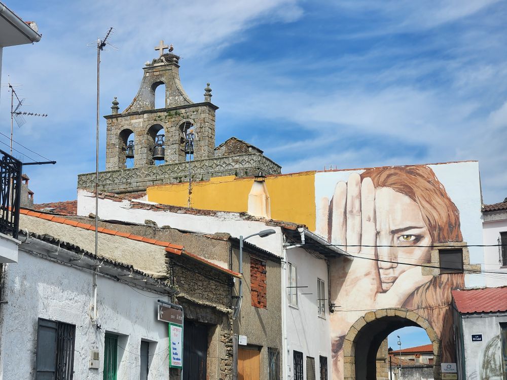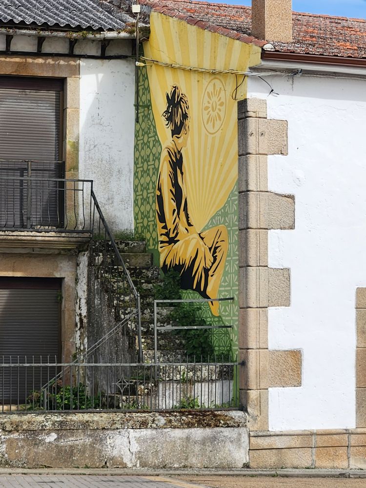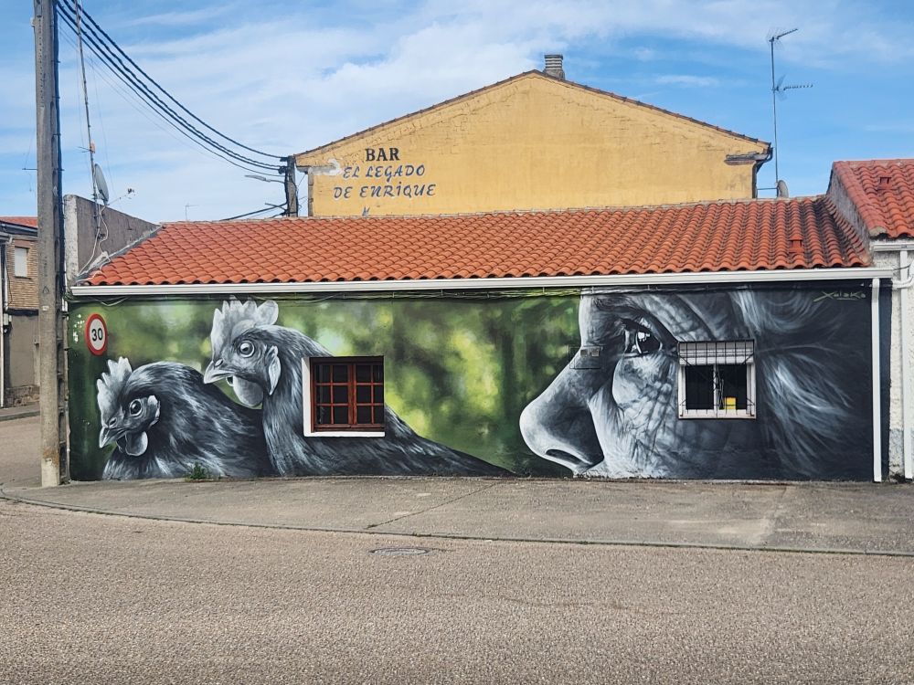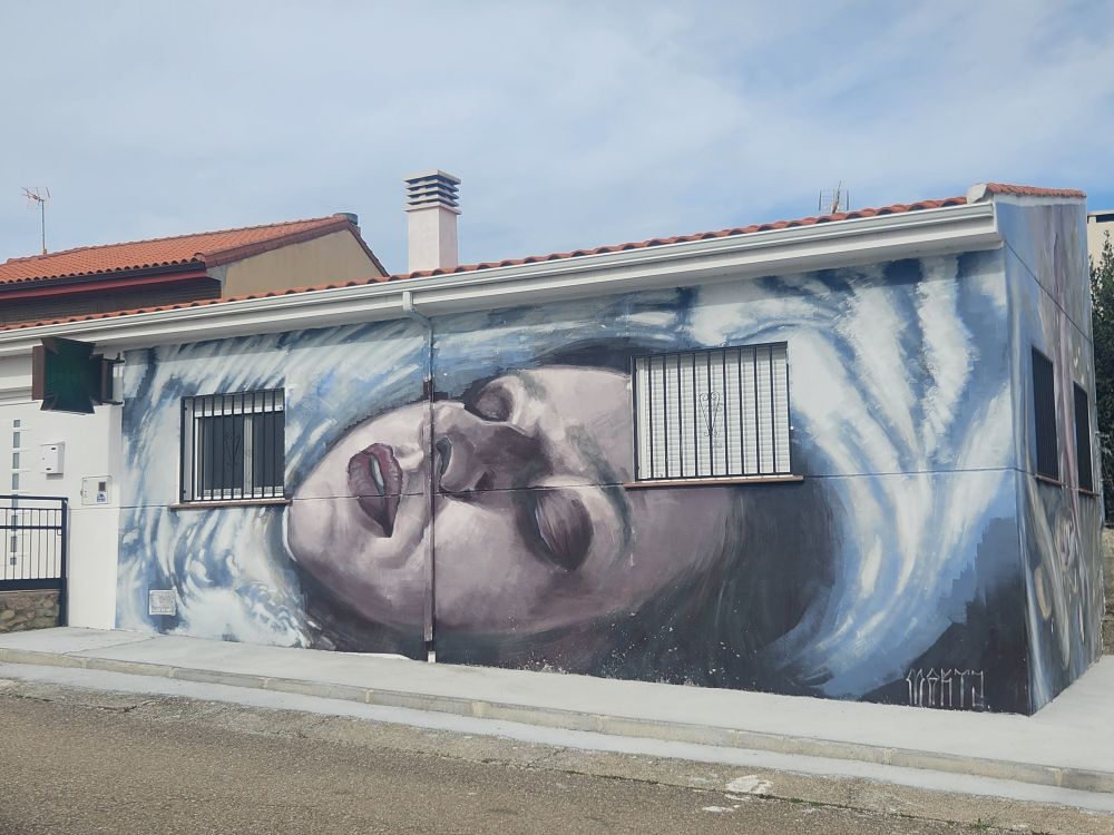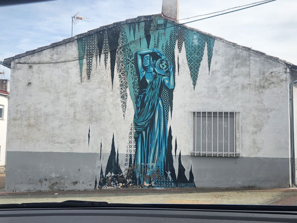 …and back to Pereña where we try to go to the next waterfall, Cascada del Pinero, but that road is even worse and we decide to be safe rather than sorry, making a u-turn as soon as the road allows and heading back to the safety of Aldeadavila – driving once again through Pereña, this time stopping for all the great murals painted on the buildings.