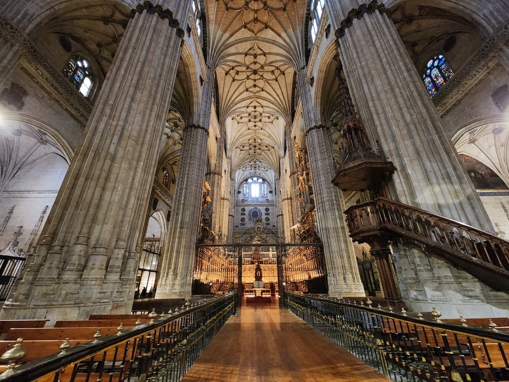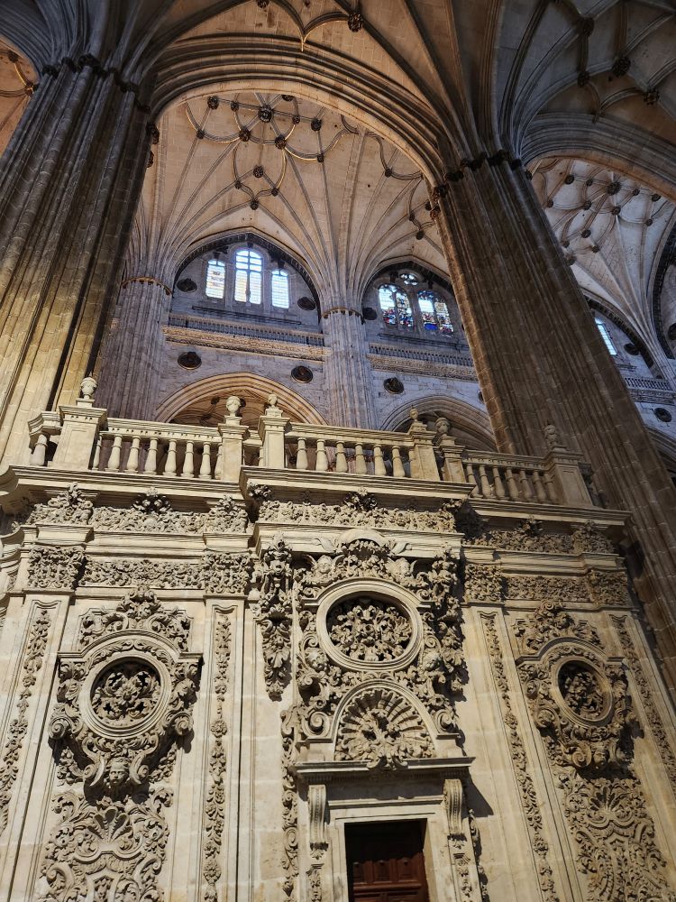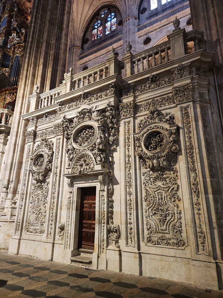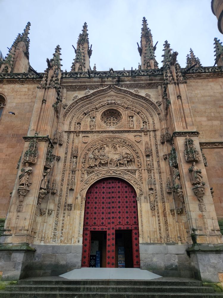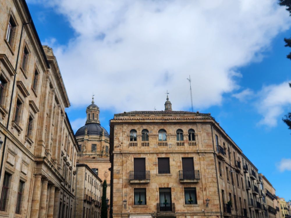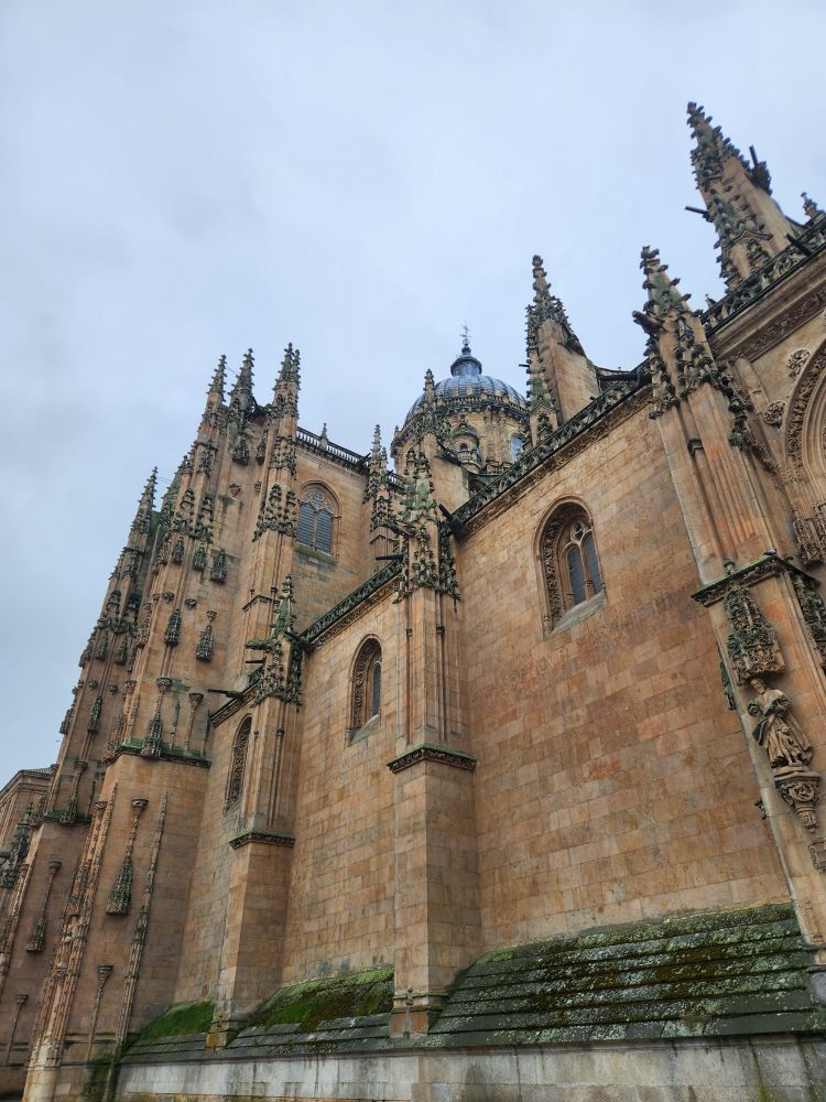 Leaving the apartment, we find our Luxor contact (whose name we still don’t know – and obviously will never know) at his desk in the lobby, and we finally check in. He is absolutely adorable, and we stop to chat for a bit. Then off we go, out into the quiet, empty Sunday morning Salamanca streets. Past La Clerecia and the Casa de las Conchas we visited yesterday, and onto Catedral Nueva for our pre-booked tickets and self-guided tour.