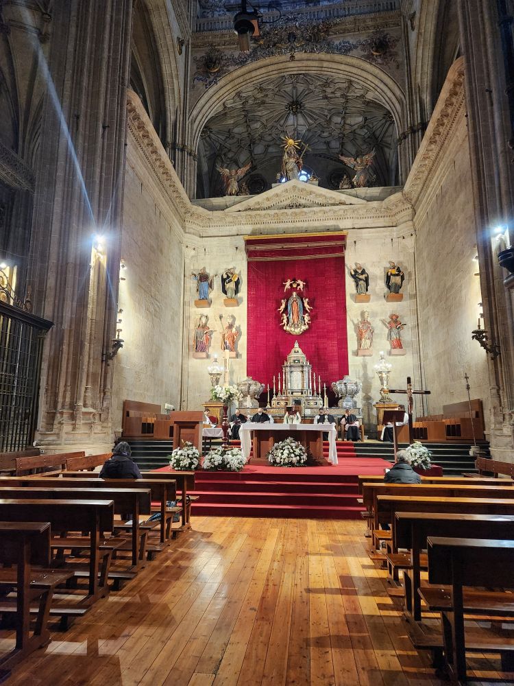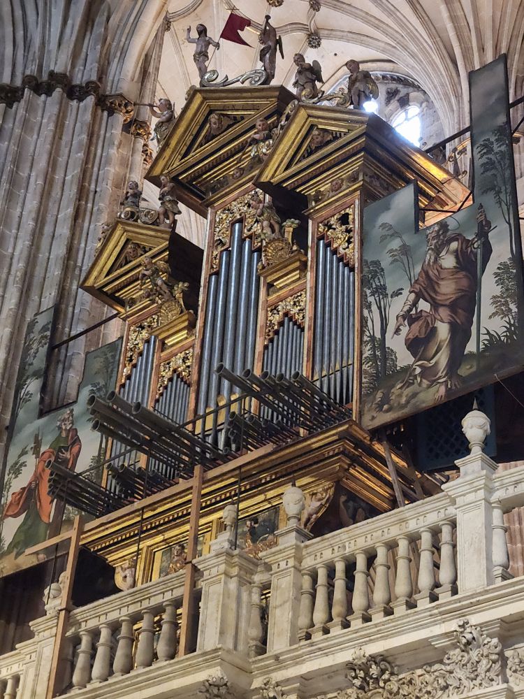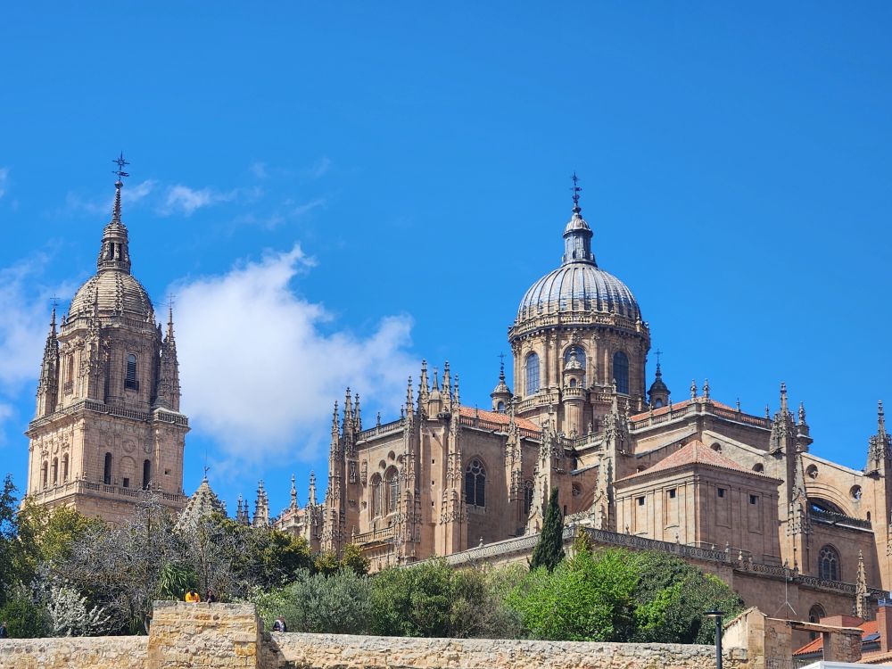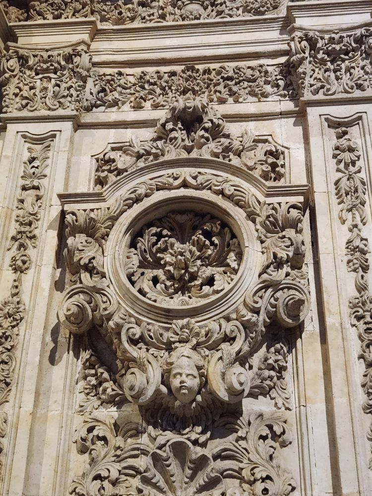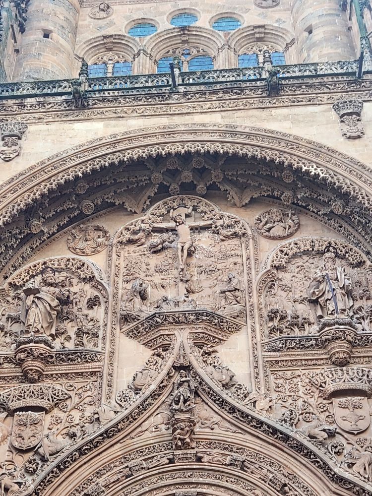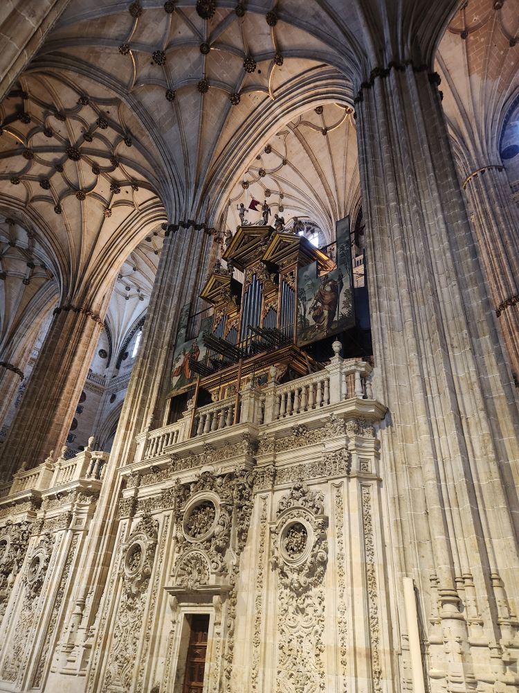 Leaving the apartment, we find our Luxor contact (whose name we still don’t know – and obviously will never know) at his desk in the lobby, and we finally check in. He is absolutely adorable, and we stop to chat for a bit. Then off we go, out into the quiet, empty Sunday morning Salamanca streets. Past La Clerecia and the Casa de las Conchas we visited yesterday, and onto Catedral Nueva for our pre-booked tickets and self-guided tour.