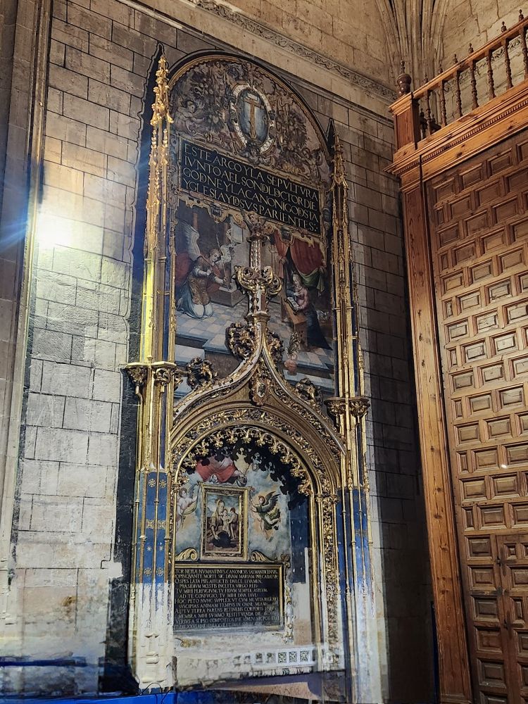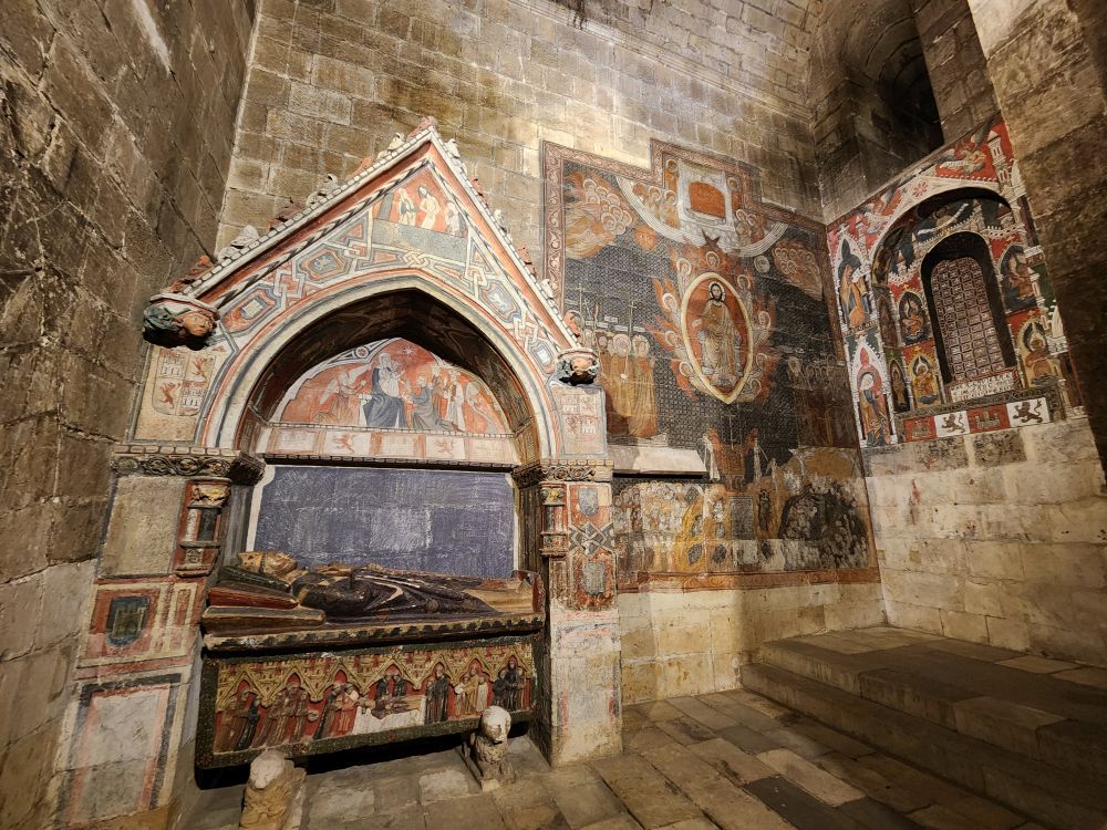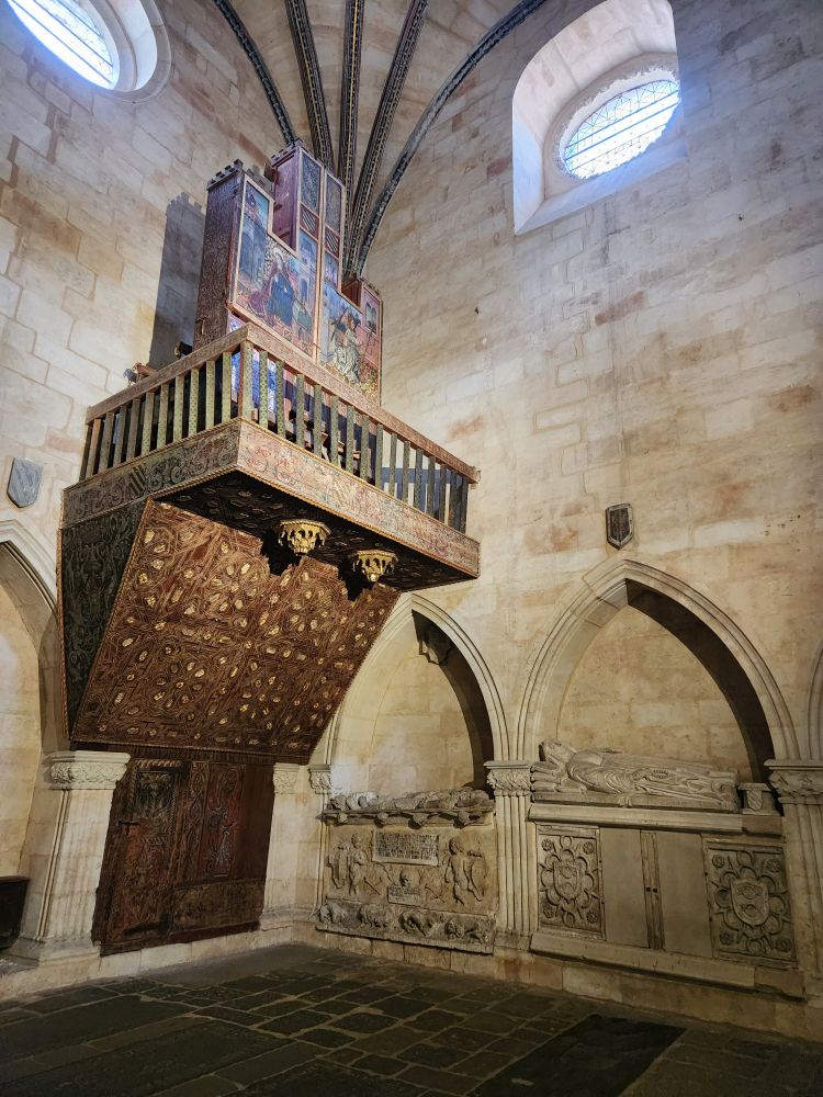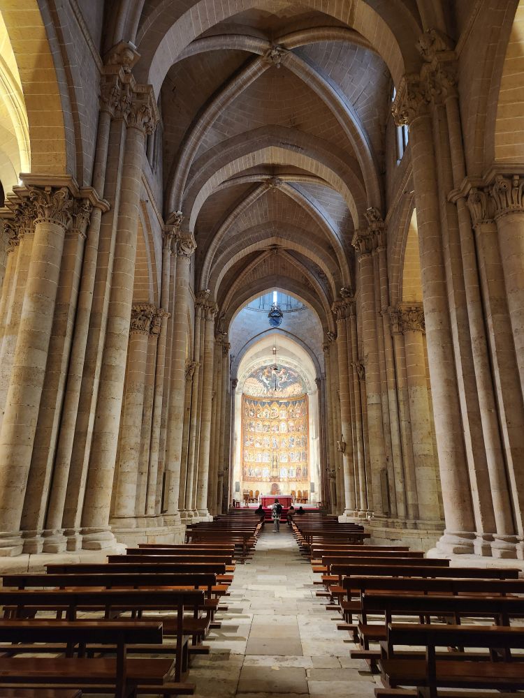 Circling the naves and the chapels, we find the vestibule leading to the old cathedrale. Built in the 1100s, and completed in 1236, the Catedral Vieja is more Romanesque than Gothic, which you can see in the columns and the arch ribbing. Much more plain and simple than the new cathedrale, we are actually more enchanted with this one.