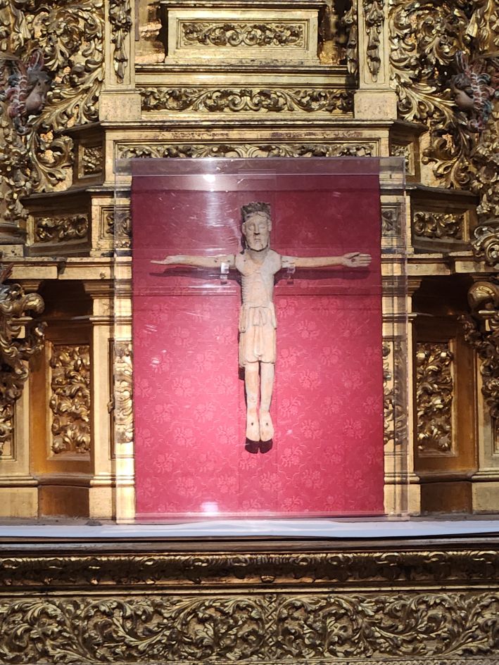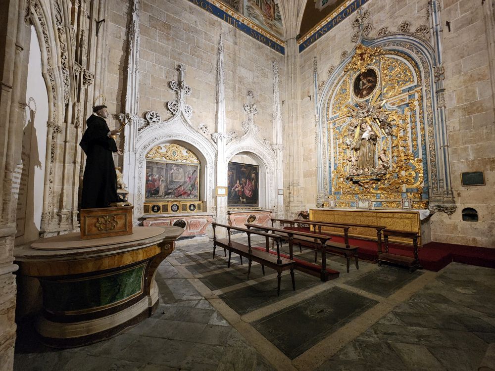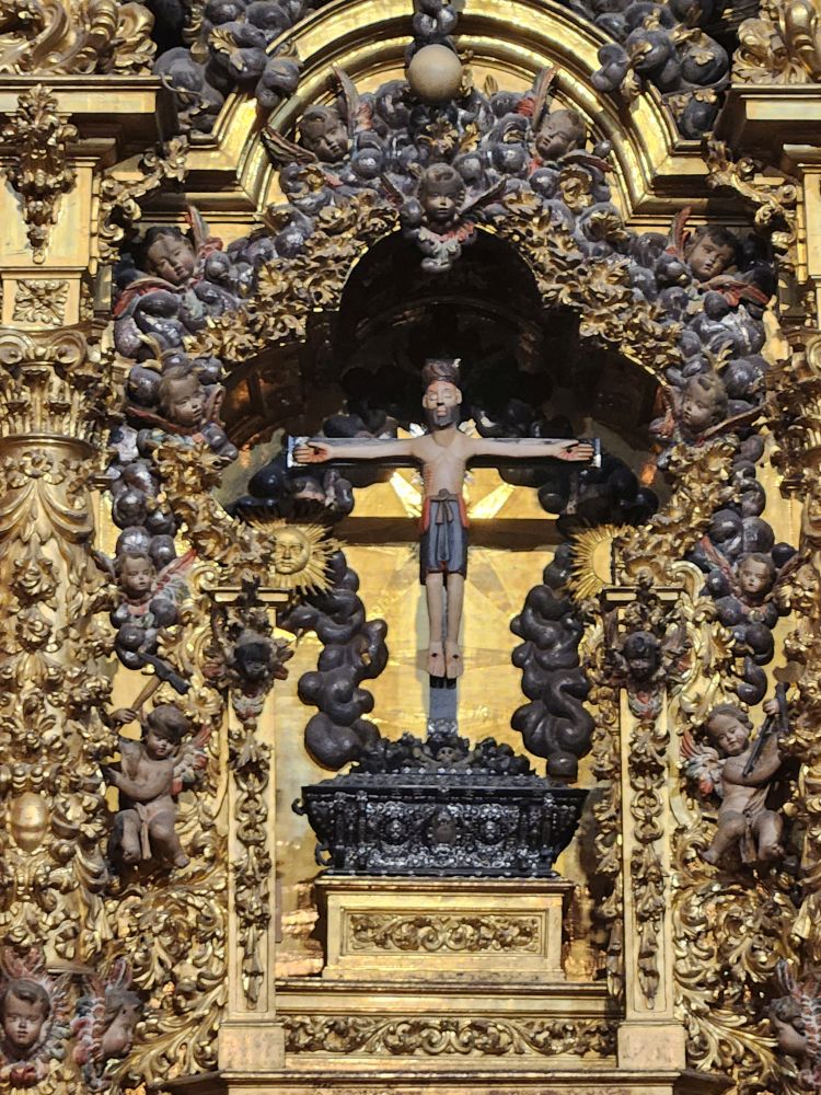 The main altarpiece presents the cycle of life of the Virgin Mary and Jesus Christ, from birth to the Last Judgment. It is the work of 3 separate artists but comes together in a stunningly cohesive (and very gold) tableau.