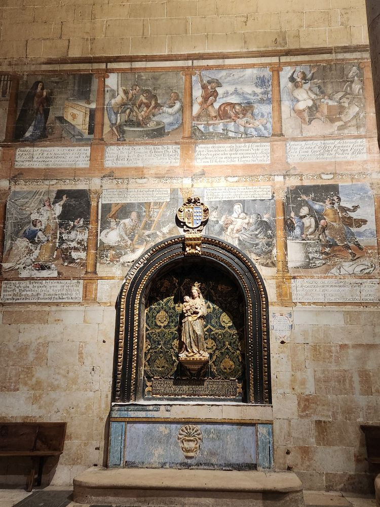The “New” Cathedrale was built between 1533 and 1733 (new being relative), a mix of Gothic and Baroque styles, and is one of the largest in all of Spain. It is constructed right next to Catedral Vieja (the “old” cathedrale), which originally was going to be demolished, however it was kept open for services during construction of the new cathedral. Once the new cathedral was completed, the diocese rethought the idea of demolishing the old church, and so it remains today. Our tour starts in the overly ornate new cathedral with its 20 lateral chapels and 3 naves. Just totally overwhelming and stunning.