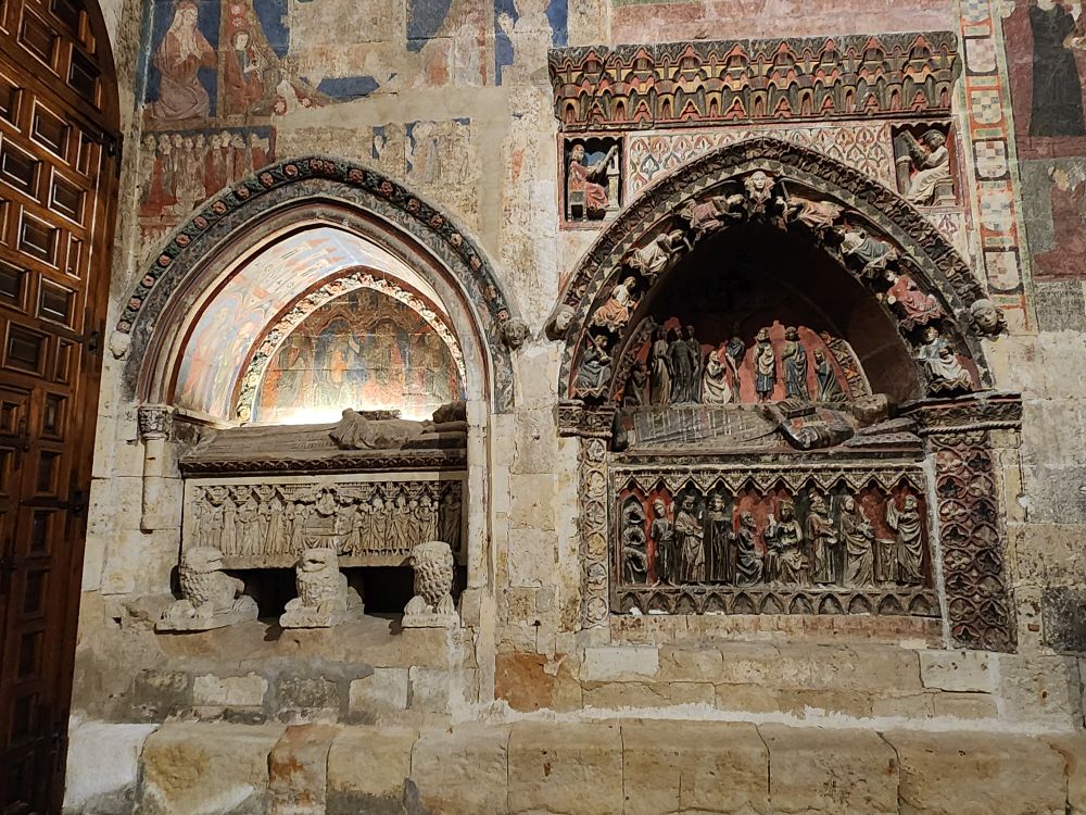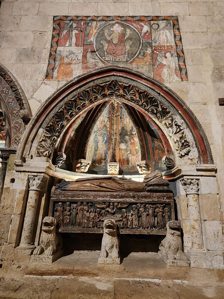 Some of the chapels are simply built into the massive walls, with the carving of the Saint’s body atop their coffin and once again, incredible colorful frescoes.