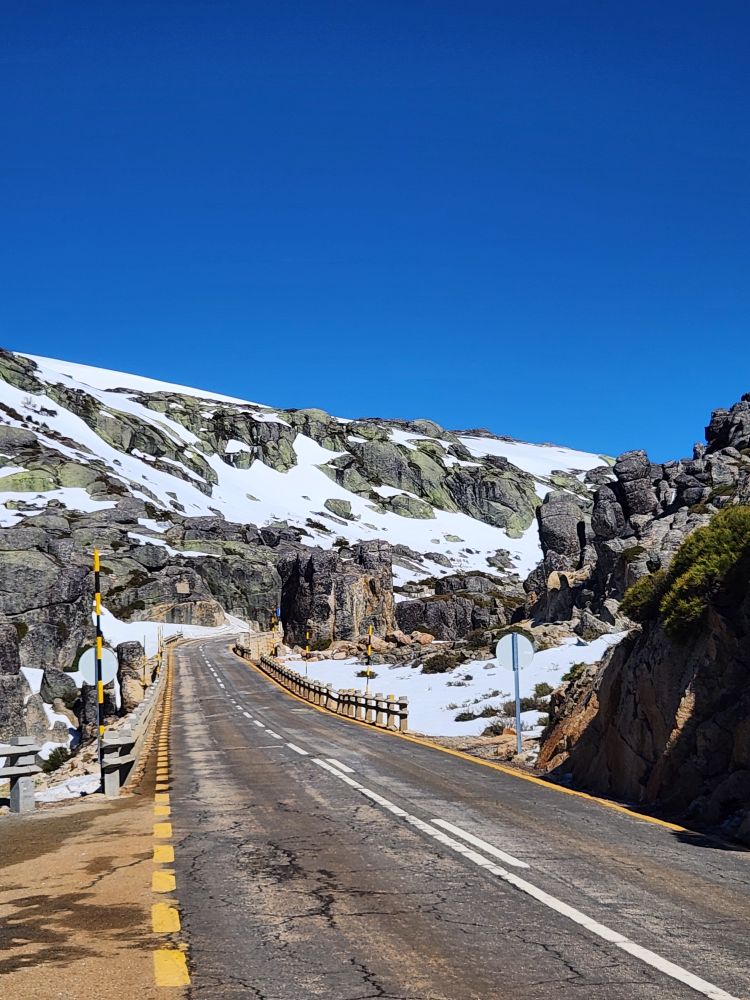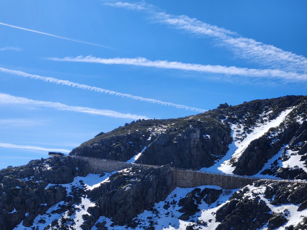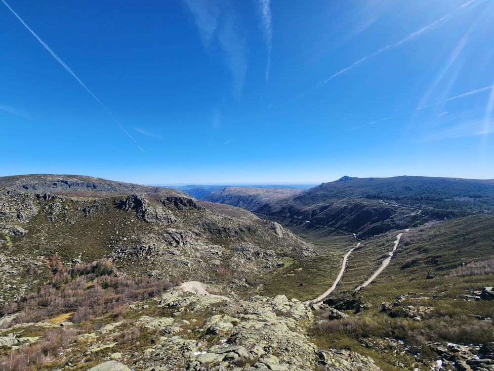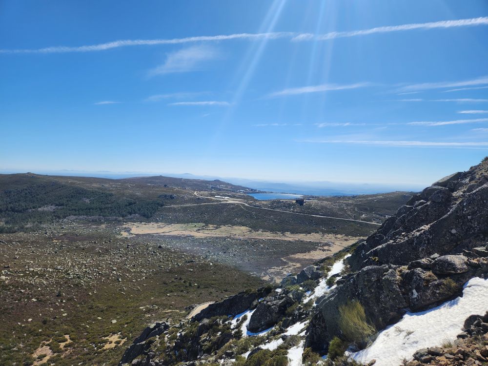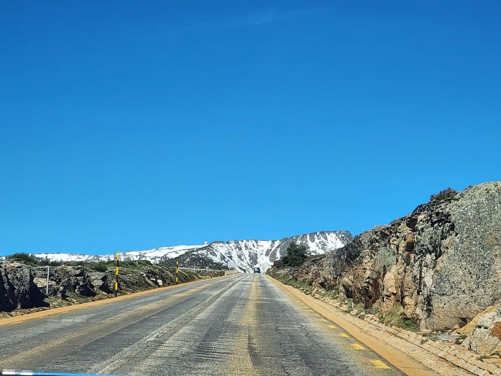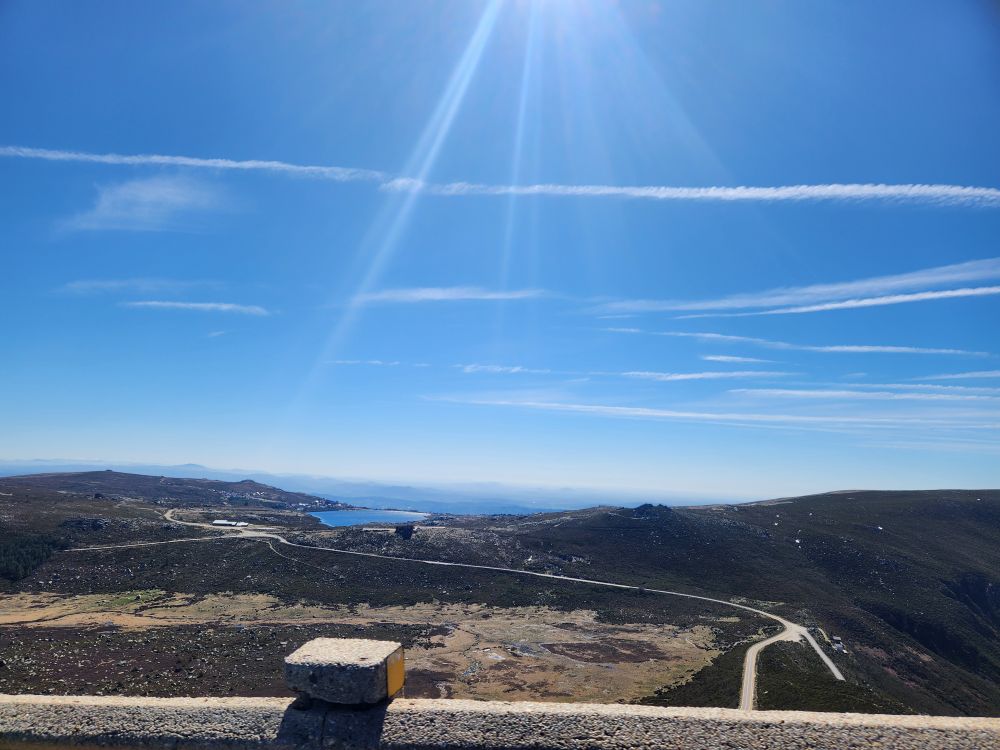 Making our turn back down the mountain we go, past stunning views of the two reservoirs up here – sparkling in the sunshine. Once again stopping at the Miradouro do Covao where, now, there is no snowman. Boo hoo, he either melted in the sunshine or someone took him.