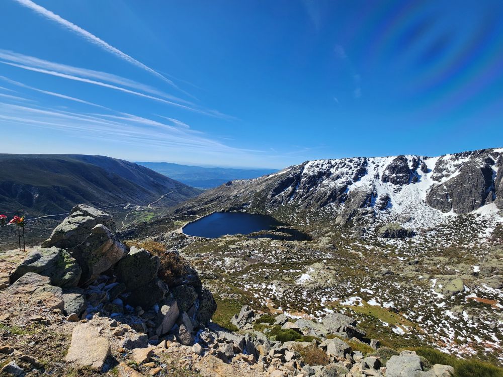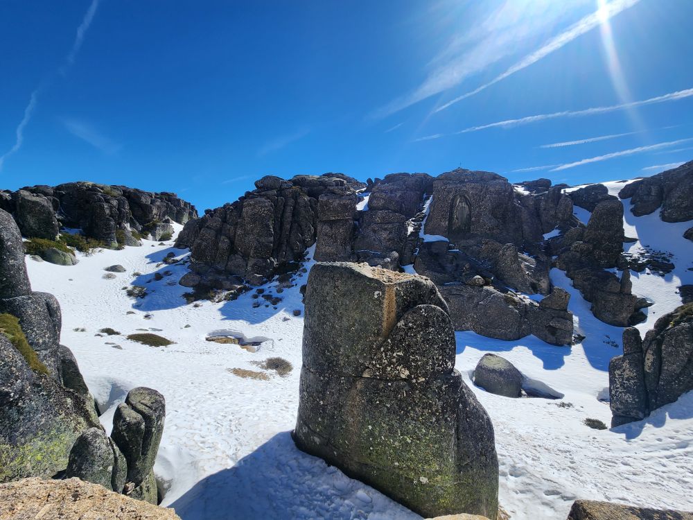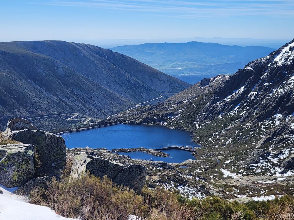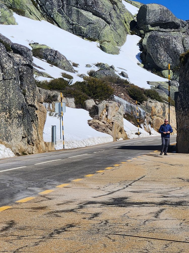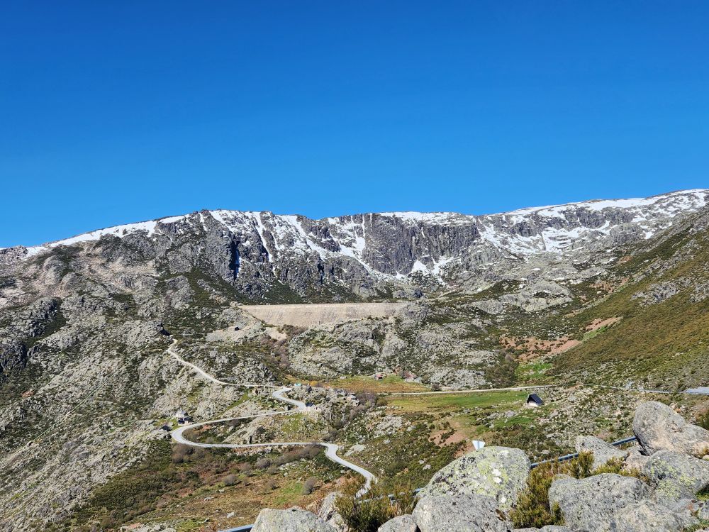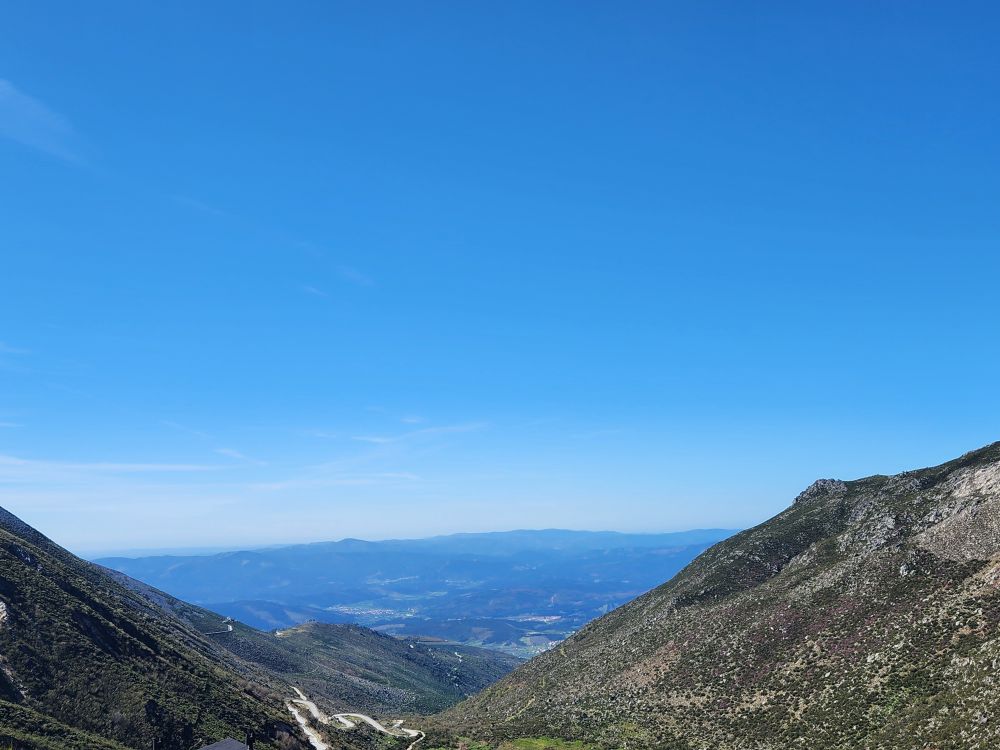 Making our turn back down the mountain we go, past stunning views of the two reservoirs up here – sparkling in the sunshine. Once again stopping at the Miradouro do Covao where, now, there is no snowman. Boo hoo, he either melted in the sunshine or someone took him.