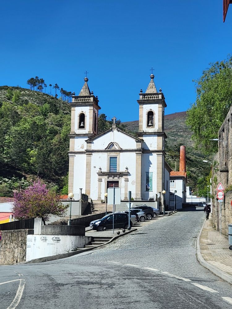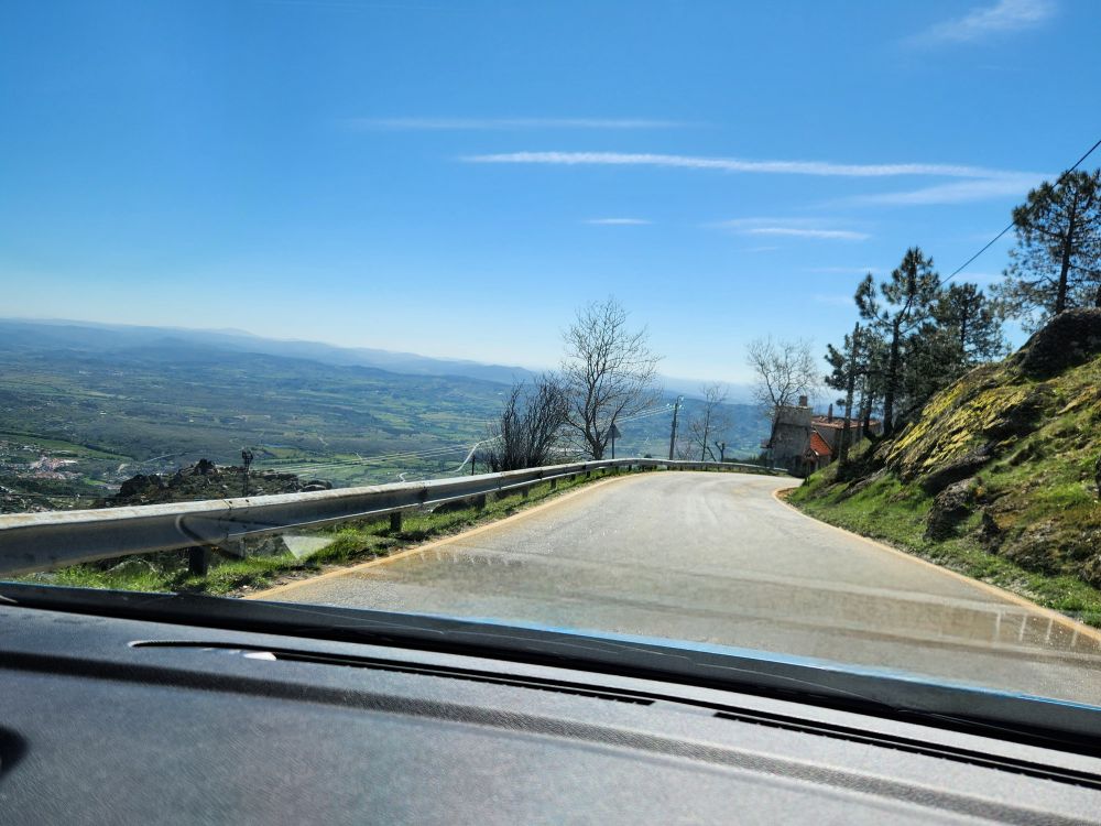 … until we get to Covilha and start our trek thru town proper, where the stupid GPS takes us on all these little teeny backroads instead of keeping us on the main wide road. Seriously! What is that thing’s problem? We actually made a wrong turn coz who can tell which way to go on these tiny narrow cobblestone streets – plus the way dingbat GPS wanted us to go was blocked by a delivery van. But the wrong turn? It actually worked in our favor and out us back on the main road. Jeez. Sometimes I hate that thing!