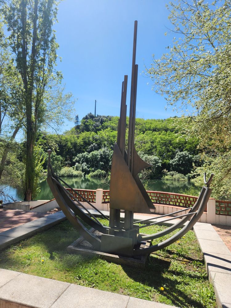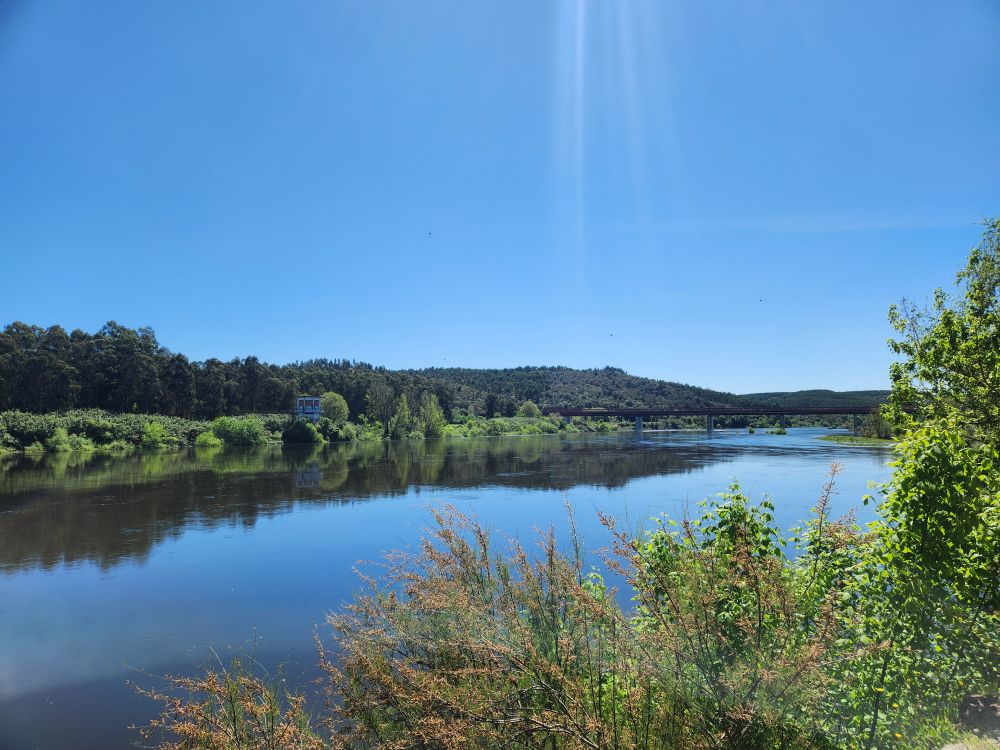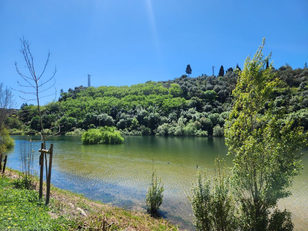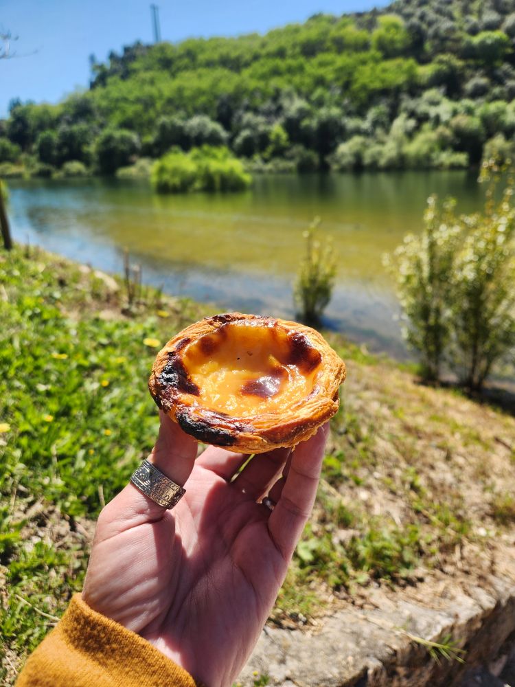 Stopping at a service rest area, we bought our last pastel de Nata (boo hiss) and picnicked on our remaining bread crackers and jam, then headed onto a viewpoint Ed found at the confluence of the Tagus and the Zezere rivers. A pretty little place to eat our last pastel and enjoy a little leg stretching walk along the river.