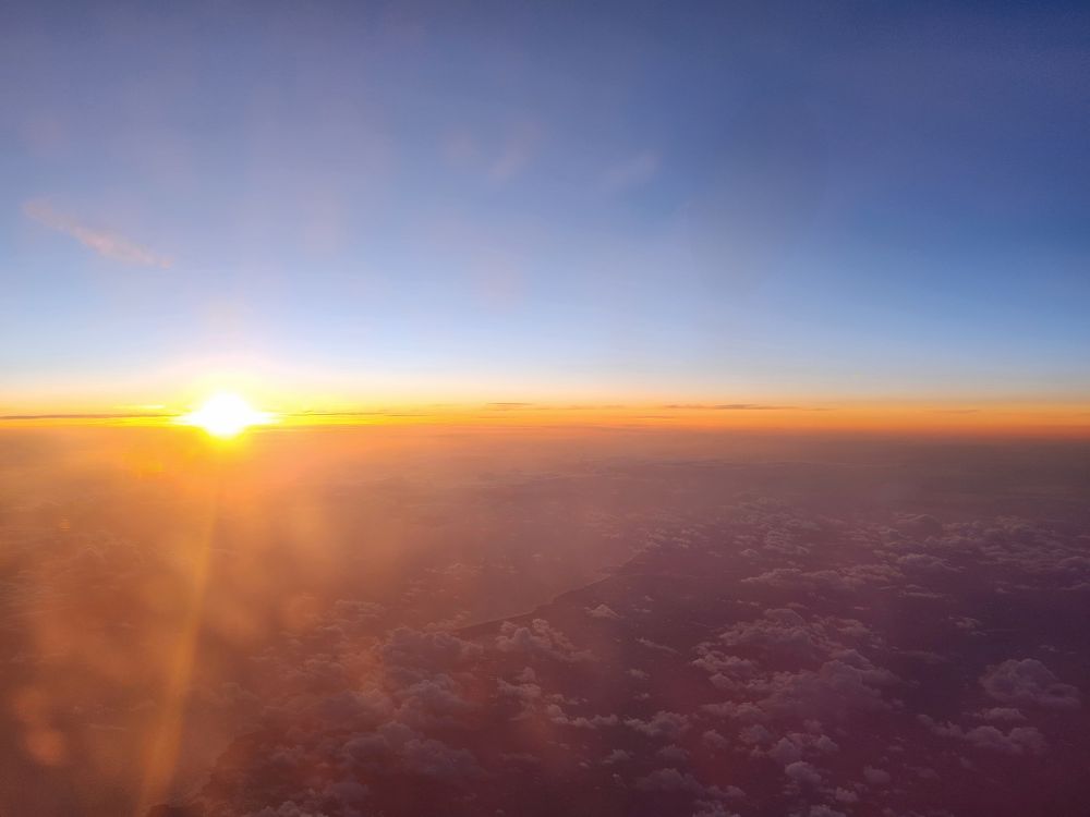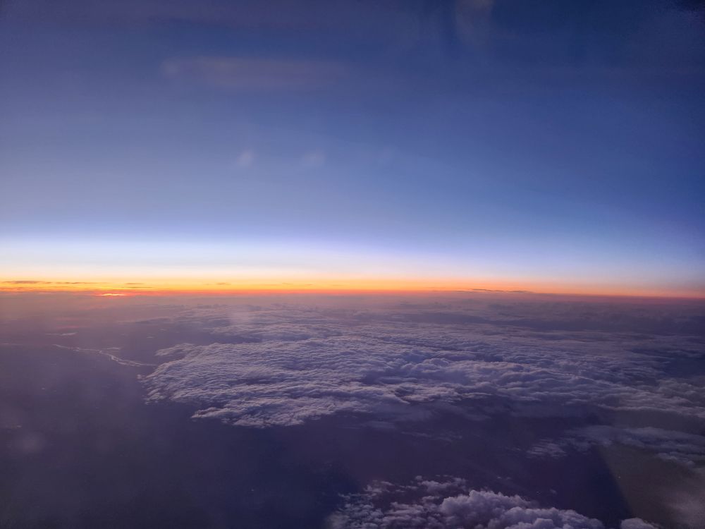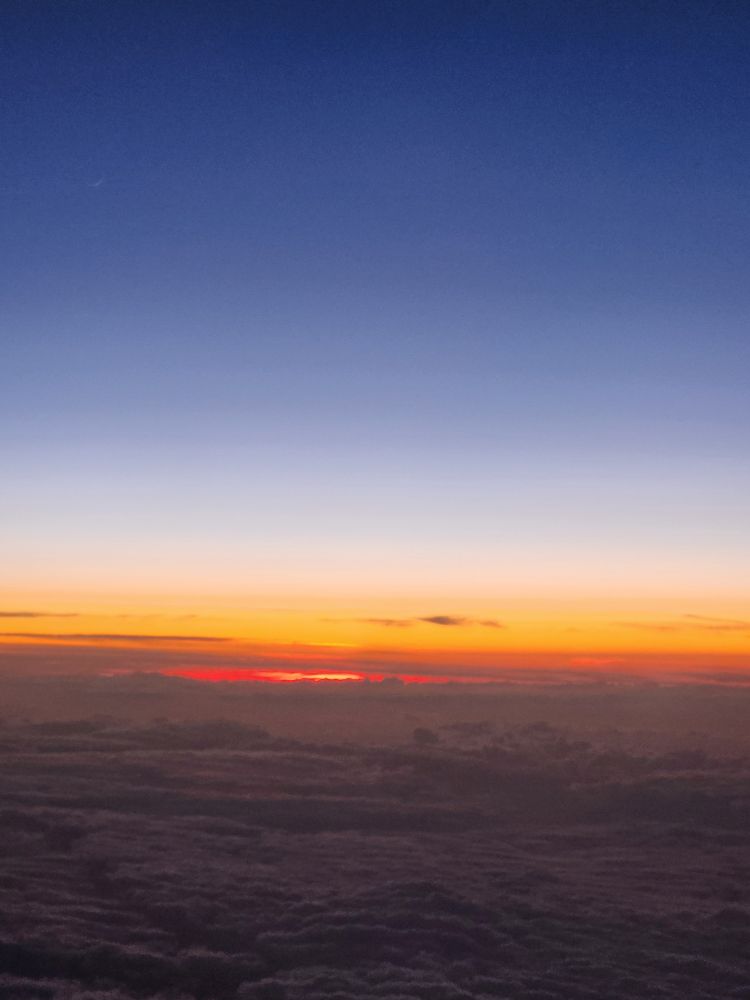 At the gate, we are the first in line, but it’s a bus, and we swear the driver doesn’t know which plane to go to! He’s driving really slow and looking around a lot. Once we get to the right plane we sit (stand) on the bus for 10 minutes before they let us off. Oh, and we are at the front door, and they only open the back door. What the F? Ugh. But we are finally aboard and actually take off right on time. (Which is a miracle because we’ve been watching this flight and it is late every single night. But not tonight – thank you travel gods!)