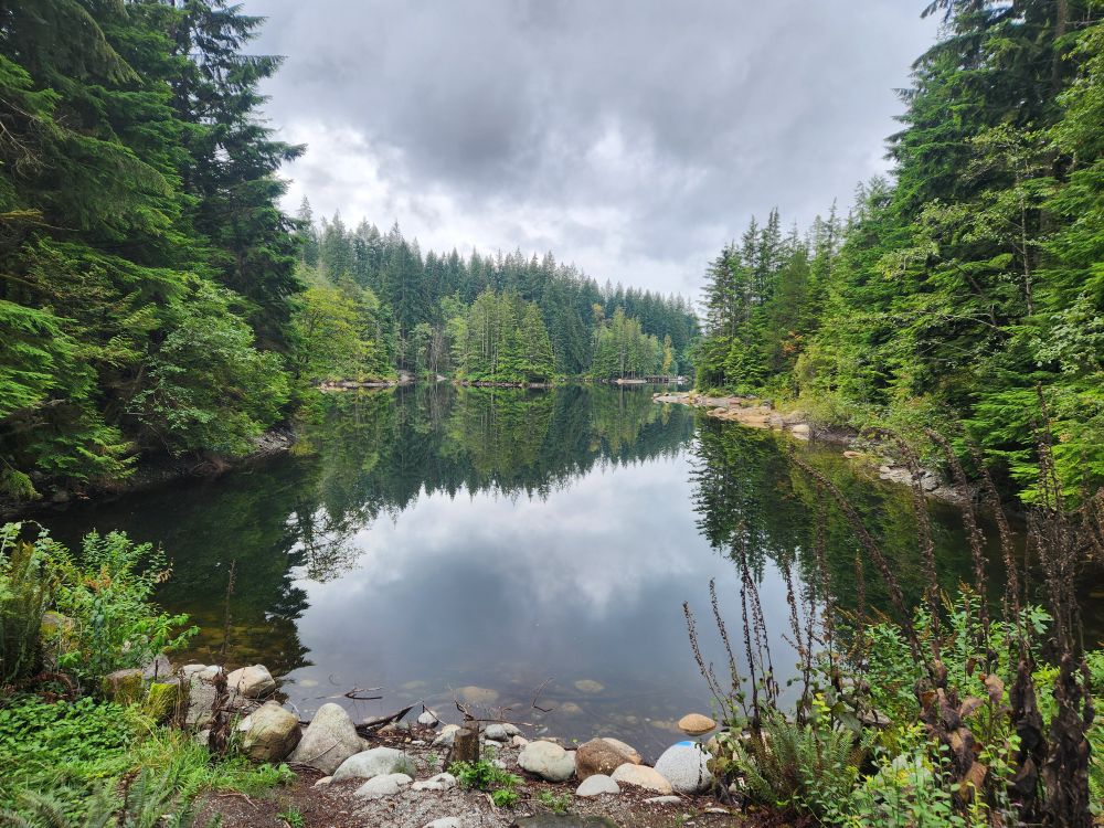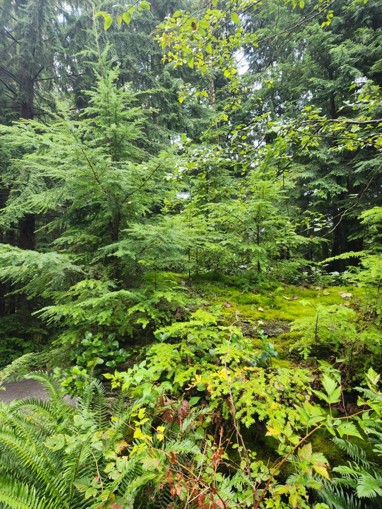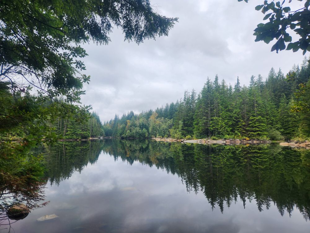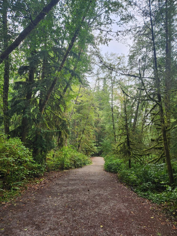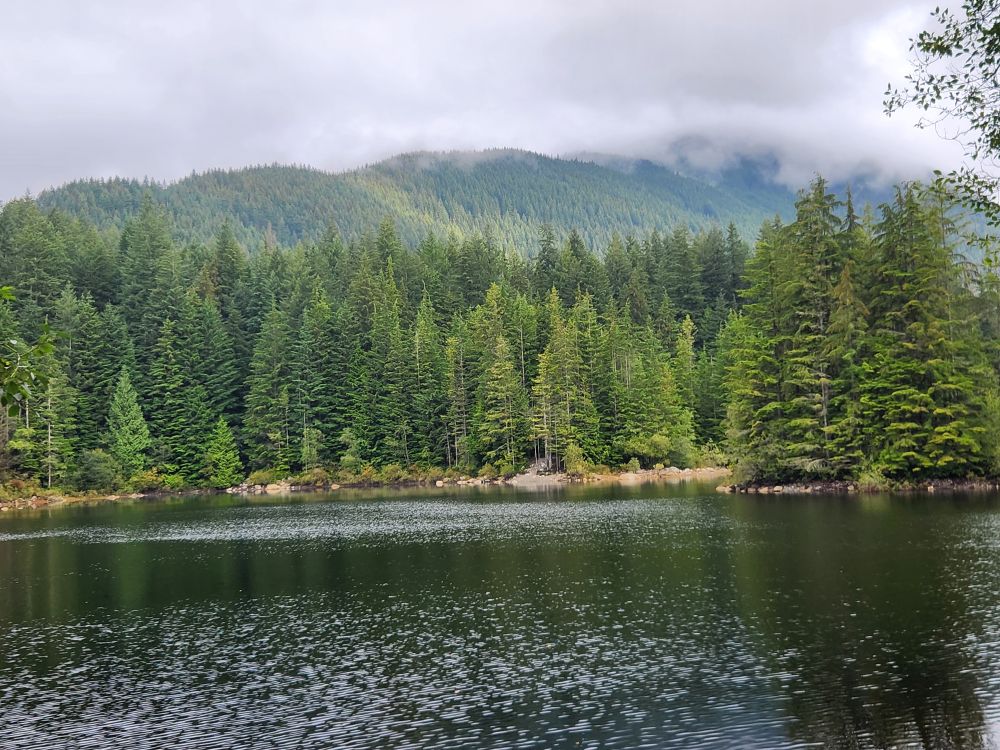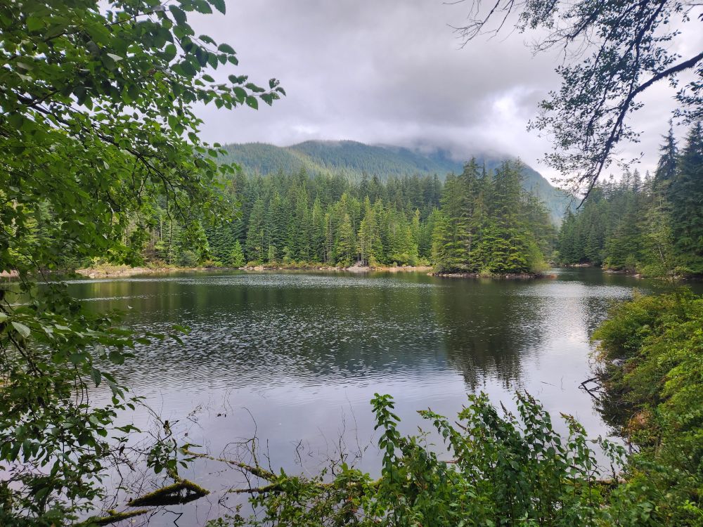 It is gorgeous here. So peaceful and quiet. And the trees! Amazingly covered in this gorgeous vibrant green moss, Hemlocks, Firs, Cottonwoods, Red Alders – all sorts of different trees in varying stages of growth or decay – lining a lovely path that winds along the shores of the lake.