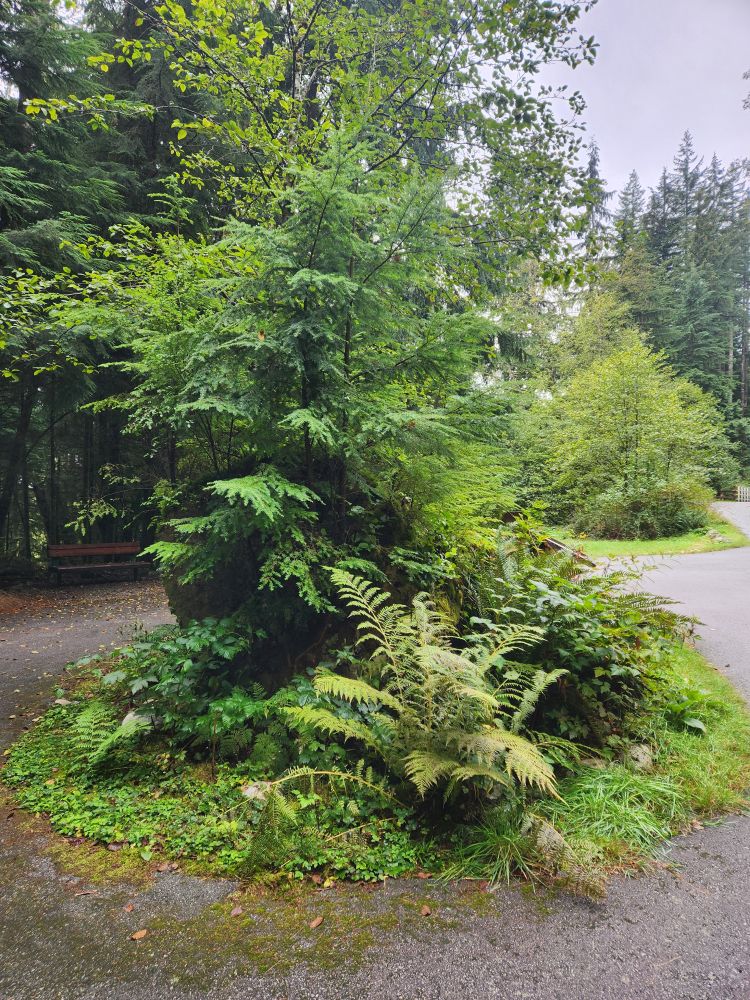 We happen upon a Nurse Log tree – which at first looks like a big overgrown stump, but in reality is a long fallen tree stump that has now nurtured all sorts of new growth. Nature at its finest!