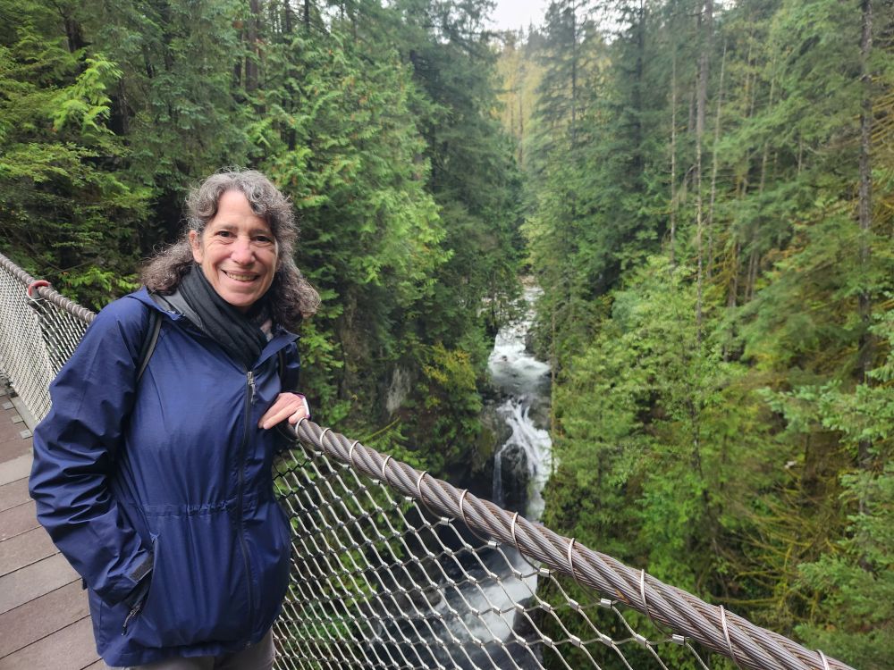 A bit later in the afternoon, we decide we don’t want to waste what clear skies we have and strike off toward Lynn Canyon where there is an ecology center, a suspension bridge and hiking trails. The suspension bridge is not as long as the Capilano bridge, but this one is free to walk along and reputedly not as crowded as Capilano, so we figure that sounds more like us!