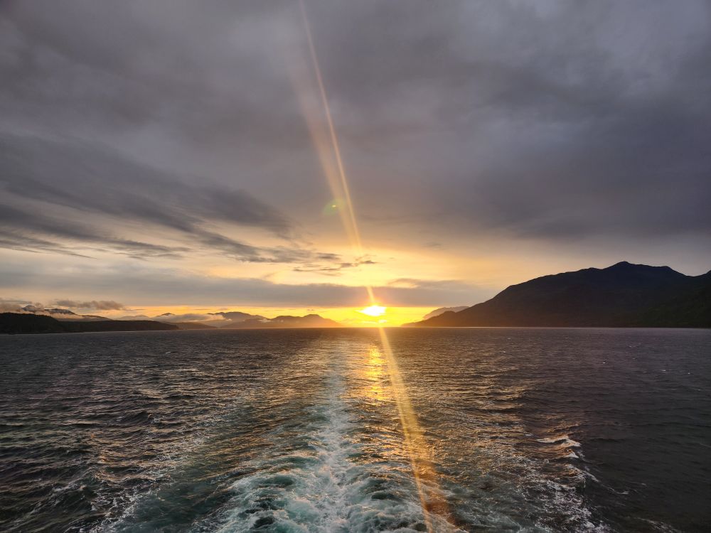 We have the afternoon pretty free, so after lunch of bratwurst and sauerkraut we sit in on trivia. A time waster and we did pretty well, it was historical quotes turned into Tweets. So a fun time waster. Then it is reading, walking around, getting used to the ship again. But oh, what a difference a few hours makes with the weather – here comes the seas! We knew we probably weren’t going to Sitka because of the big storm off the coast, but we’re still feeling the effects of it even here, heading more coastal and inland. Phew. We’re going for a ride! Full aft – yep – batten down the hatches!