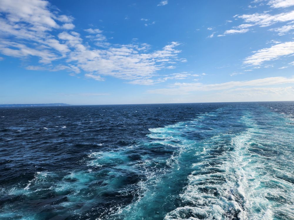 Land Ho!!!! Yay! We can see it, it is really happening! LOL. After a lovely sleep without thrashing around the ocean, we are up at our normal time and in the now quiet buffet. All that craziness? It was definitely the time change! Geez. What a joke! We’re happy as it is blissful up here now. No complaints.