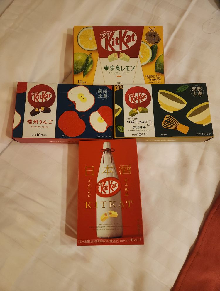 Amazing. We spend a good hour just wandering around. We find everything we need though – a new little alarm clock since ours has decided to literally fade away, aforementioned q-tips, kit kats! Yes! Expensive? Yes! But there are apple kit kats, lime kit kats, matcha and sake versions. How can we resist?