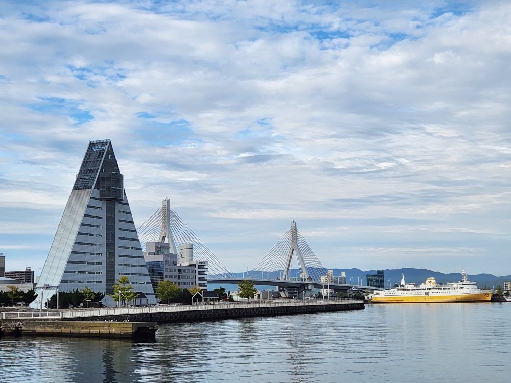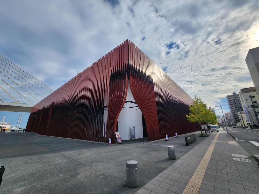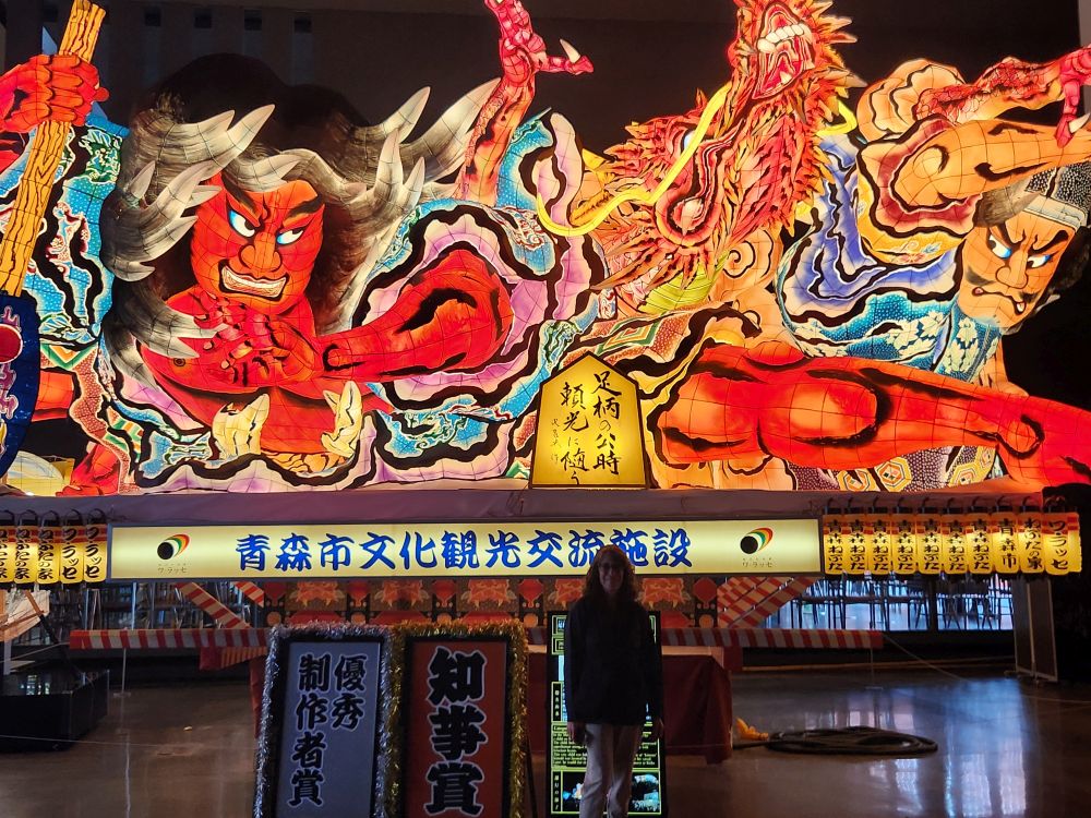 Fittingly, our first stop will be the Nebuta Wa Rasse museum, which was about a 15-minute walk from the pier. But since we are early, we have time to wander through the waterfront park, and photo opportunities with these great concrete seals and a really wild looking tree. We also walked through the APSAM complex – the huge pyramid looking building on the waterfront park. There are tons of shops and restaurants, including a local beer stall, all of which are just getting ready to open. Might be a good place to shop and snack – later once all the shops are open. And since it is right on the way to ship, it’s a convenient stop before reboarding.