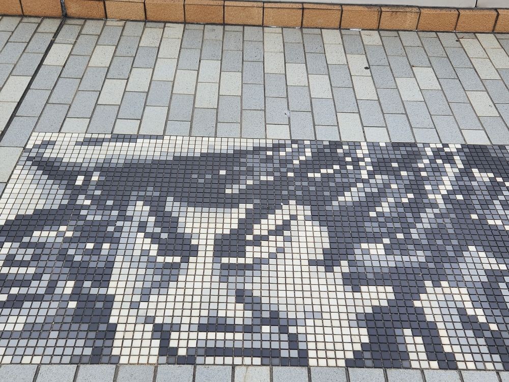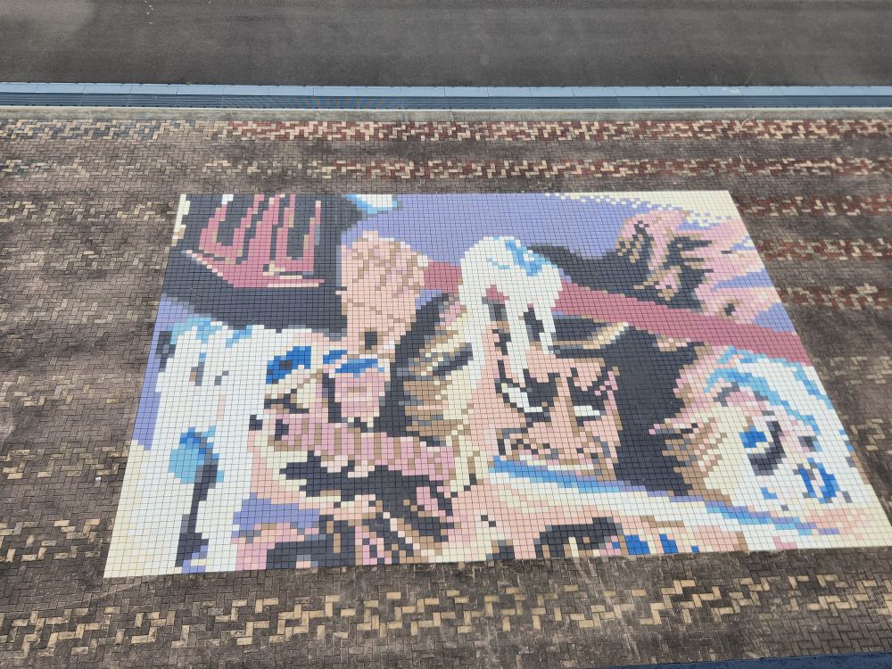 It was around time to start looking for a restaurant anyway, so we headed back to the main town area, crossing what we will always remember as the “Naked Lady statue” bridge. There was this random iron naked lady at the apex of the bridge – with not plaque, no explanation – and no I did not take a picture because I thought it would be too touristy. Ok – so it isn’t like every local here doesn’t know we are tourists, but still….. Also on the bridge was a neat tile mosaic of a Nebuta face.