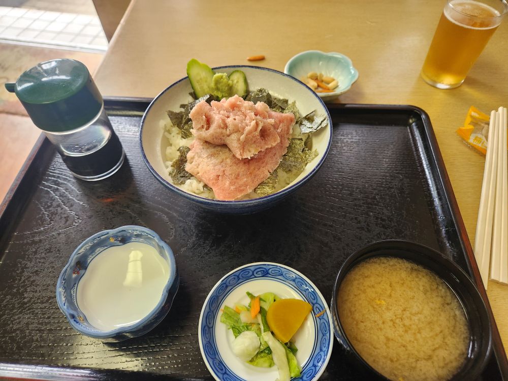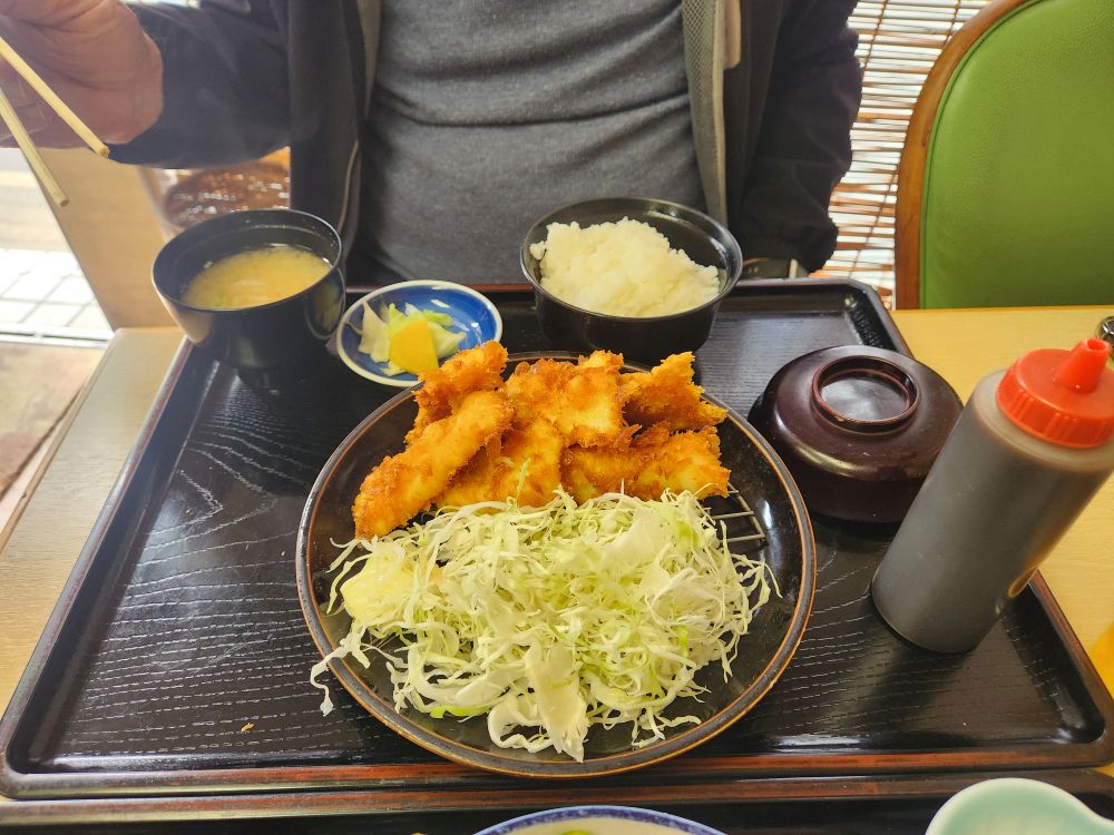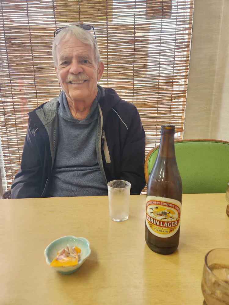 We hiked our way into town, heading for a Sapporo Beer restaurant, only to find it totally westernized and rather pricey. Nope. Not going there. So now we are meandering, and we stumble upon some little Izakaya with the traditional mom and pop running the place and a huge menu. Of course everything’s in Japanese and if you don’t have Google Translate, you’re not gonna eat there! But we do! And pointing works quite well! It was absolutely amazing. I had tuna tataki, which is basically tuna tartare, on rice and Ed had this amazing dish of fried Squid. Both came as a set meal with miso soup (delish) and picked radish and veggies. So fun and cool. And we were the only people who were not Japanese in there.