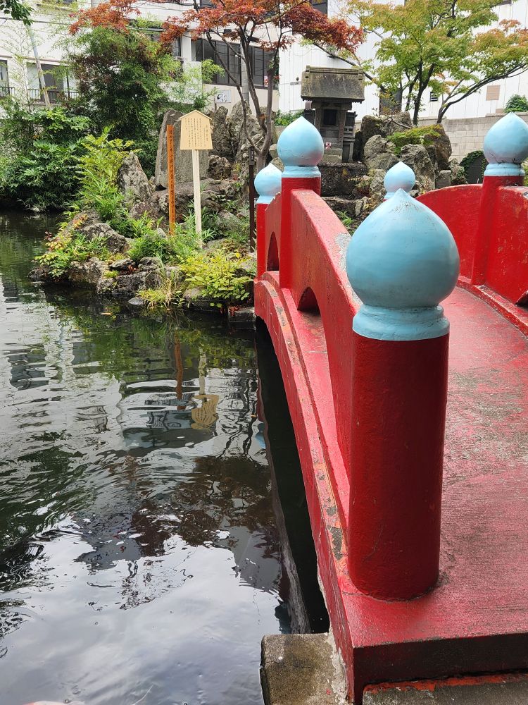 The shrine area is nice – obviously old – and rather small. Nothing was open, but we did enjoy walking around the old structures, the Sake hut and the peaceful pond. There was a lot of great wooden carving, and of course the Ryujin (God of the Sea and Water) stone carving. A pretty and peaceful little diversion.