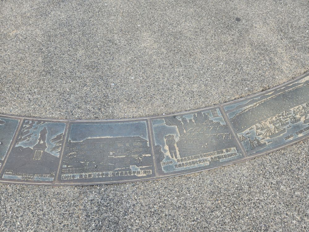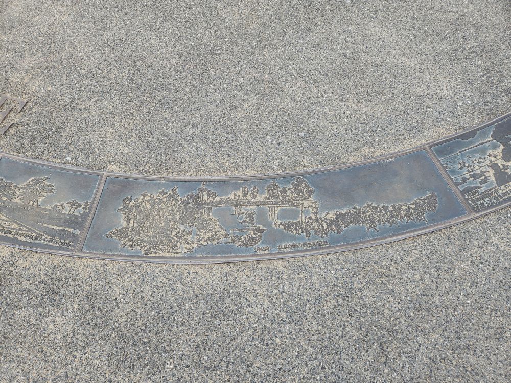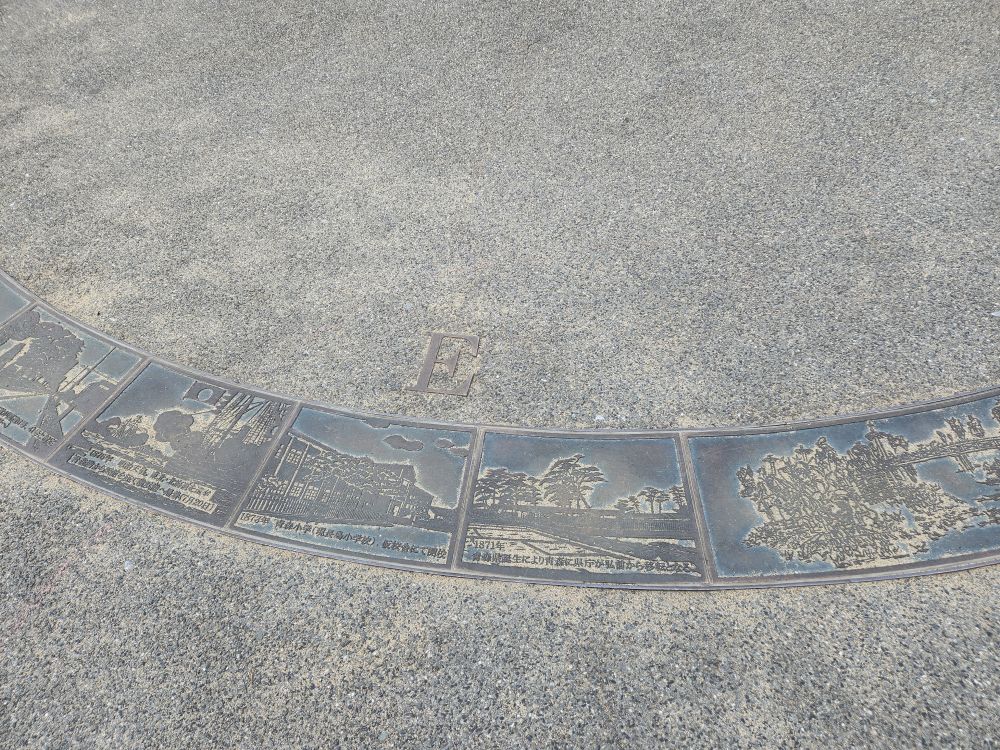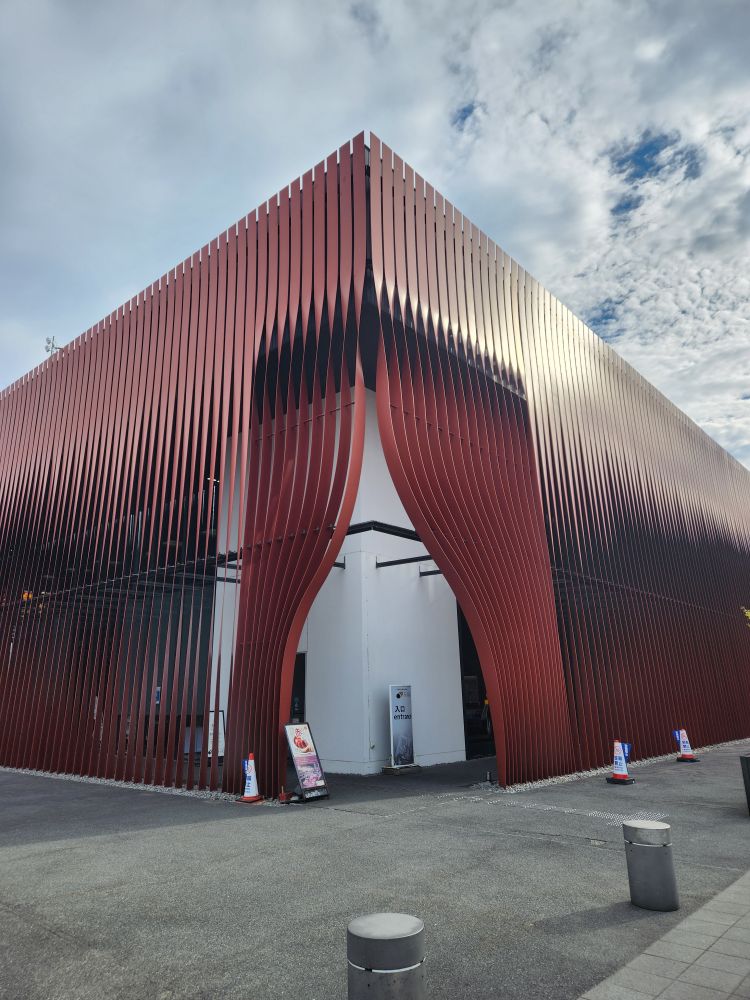 Onward we march to the Wa Rasse museum, which is still 20 minutes away from opening. Might as well just wait here and be first in, so we hang around the entrance of the wildly designed building. It has this whole outer shell of flat red metal strips, about 1 foot wide. At intervals around the building, they are twisted to provide entries into a little walkway – almost like a portico – that runs around the building. It’s really wild – and quite attractive. There is also a “history circle” made up of inlaid tiles on the square outside the museum which depicts 37 key events in Aomori’s history. The tiles span the city’s history from its birth – volcanic eruptions of Mt. Azuma-dake – through the 2010 commencement of Shinkansen routes to the city. Cool idea.