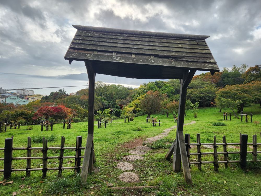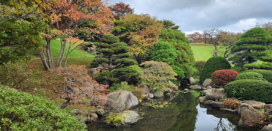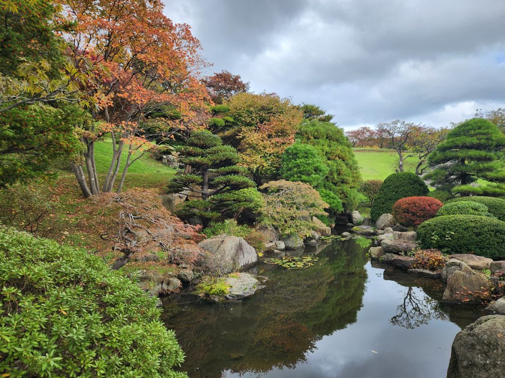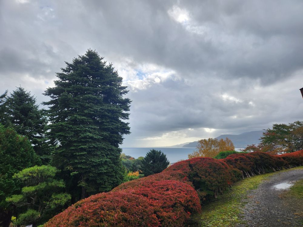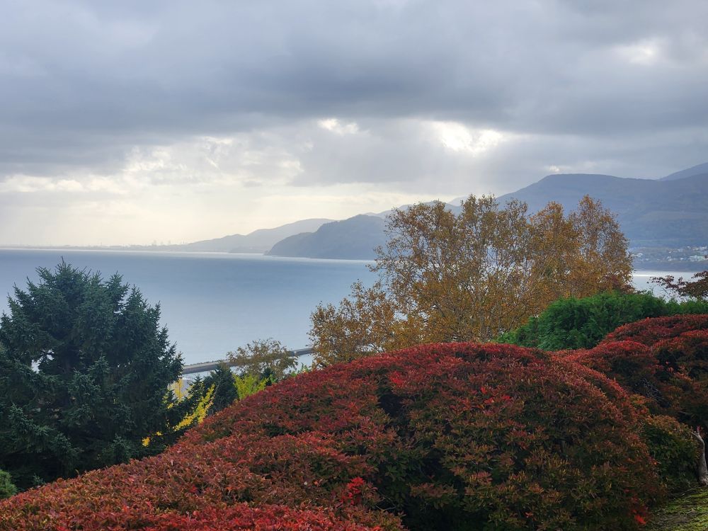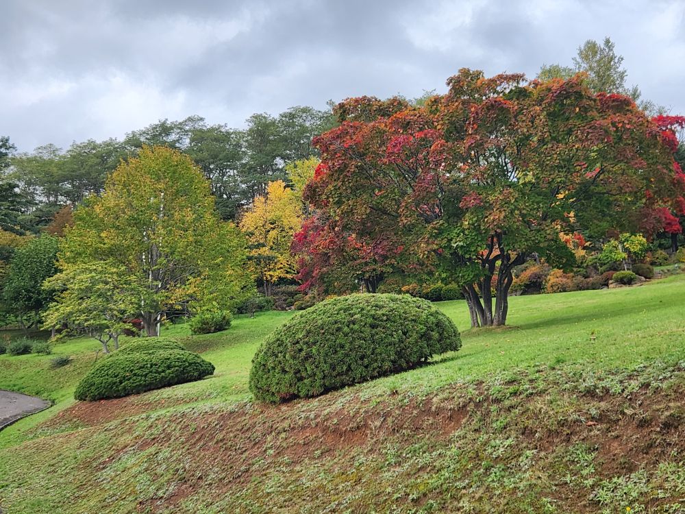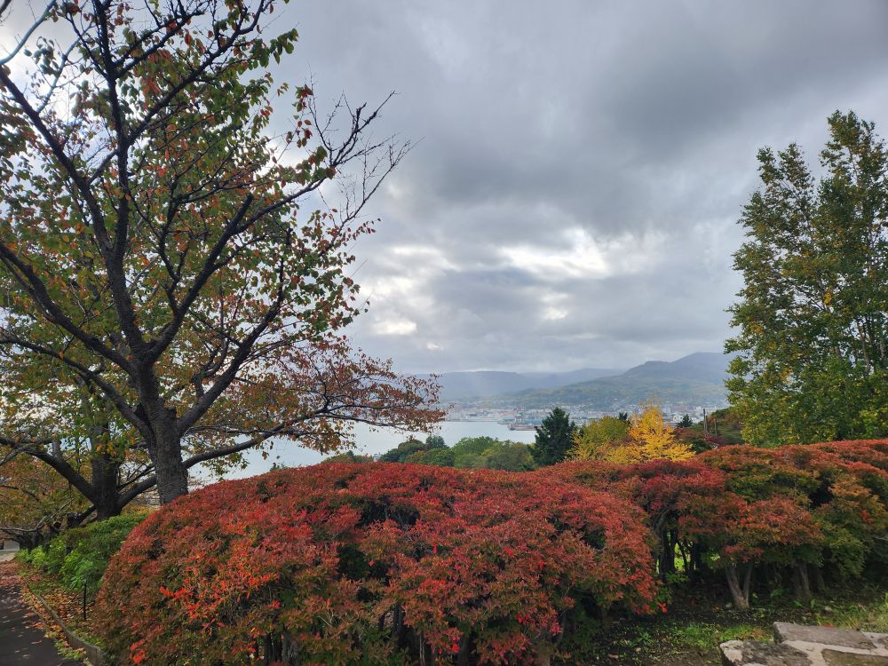 Once on top of the hillside, the gardens were amazing. First of all, we were up there all by ourselves, not another soul in sight. Secondly, the leaves were just turning making for beautiful views out across the harbor to the far mountains. Gorgeous.