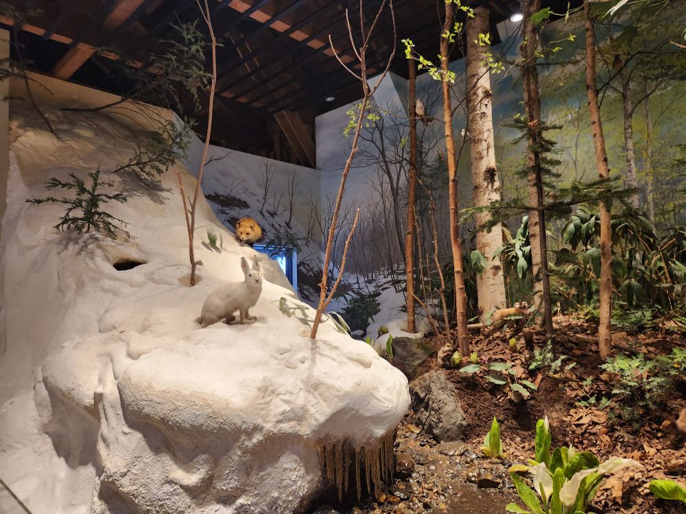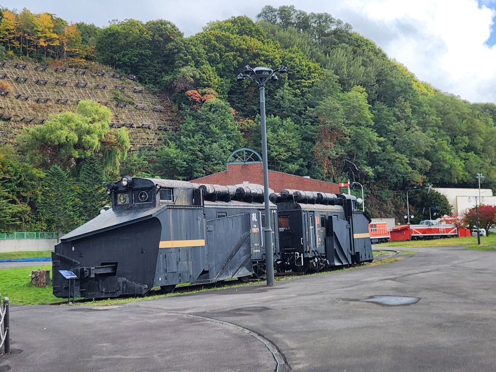 The property includes the former Temiya Railway facilities with a huge turntable and roundhouse that houses original steam locomotives and engines and plows and loads of interesting old Train paraphernalia. Makes for nice explorations out in the brisk fresh air.
