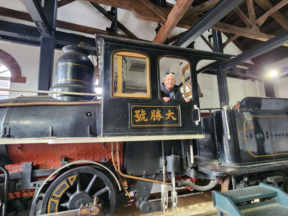 Reaching sea level yet again, we make our first stop at the Otaru Museum, which is essentially a railroad museum. Otaru is the birthplace of the Hokkaido Railway and the first place to use electrification for trains. A huge source of pride here, judging from this massive facility with all varieties of trains, cars, locomotives and snowplows. Yes, these massive snowplows, because it really snows up here a lot in the winter – remember, we’re only 45 minutes from Sapporo here. Very fun walking around looking at all the trains, and Ed of course is in his glory – Mr. Train/Tram/Automotive man!