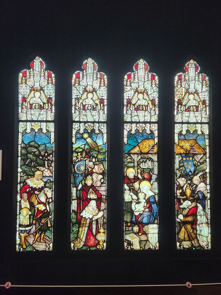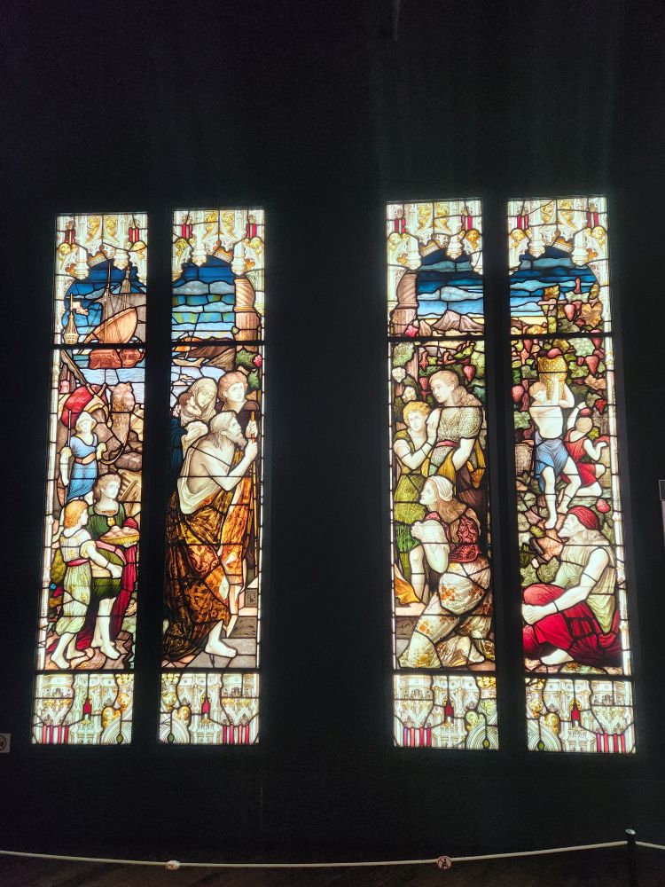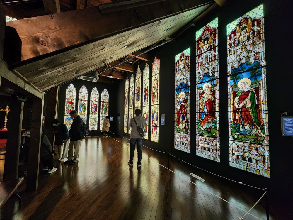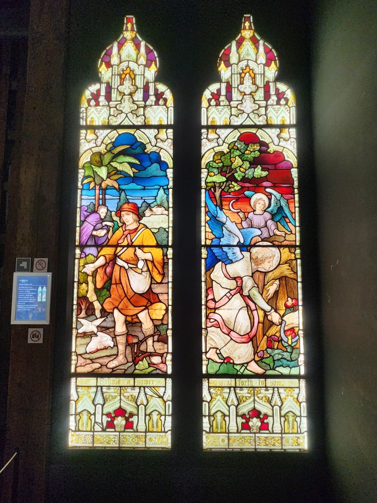 Our wanderings finally end at the Nitori Museum of Art, a mix of Japanese and Western-style paintings and sculptures which was fun and interesting. Here again, though, we couldn’t take any pictures which was really a bummer because they had some very gorgeous wood carvings and glass work and silk screen wall hangings. Oh well. They did have more stained glass windows that we were allowed to photograph. Otherwise, it was a nice diversion that let us stay out a little longer.