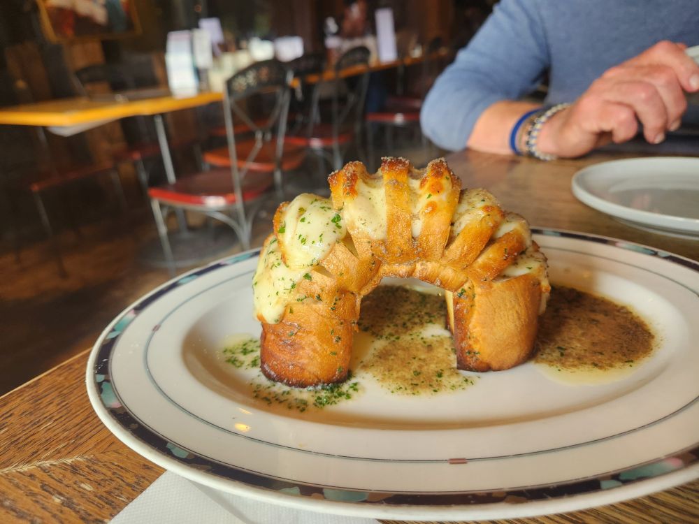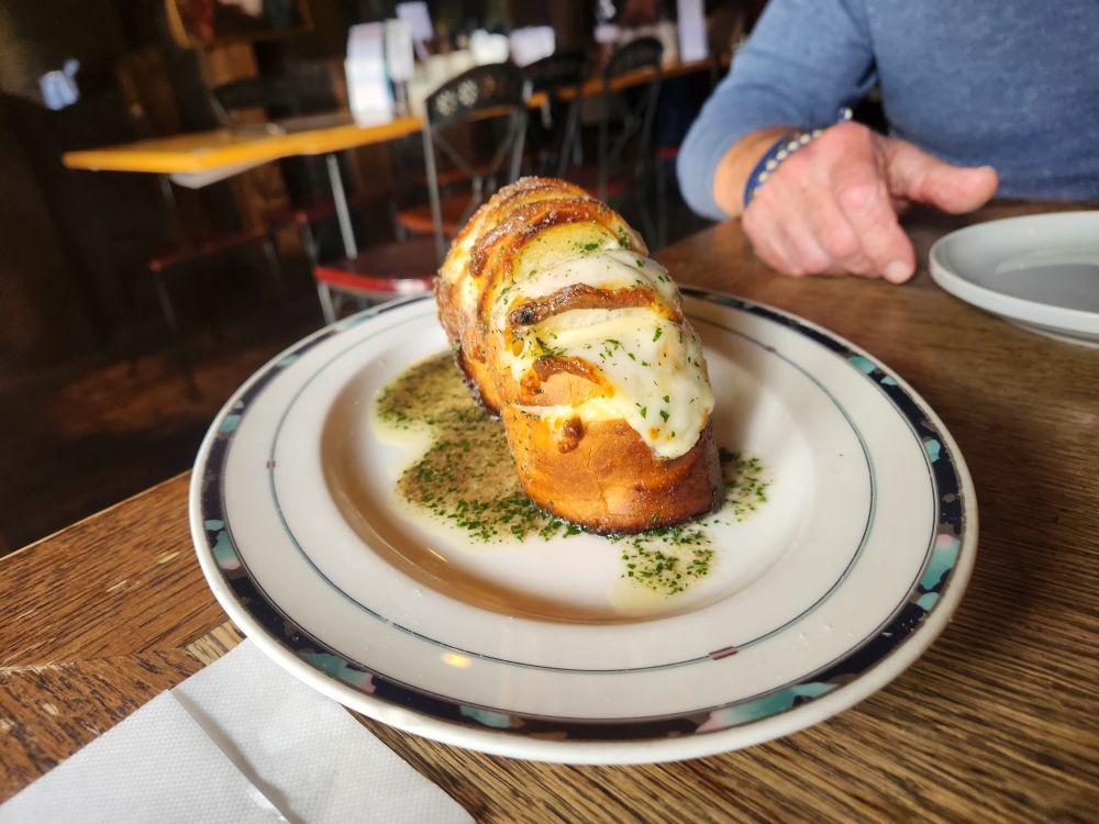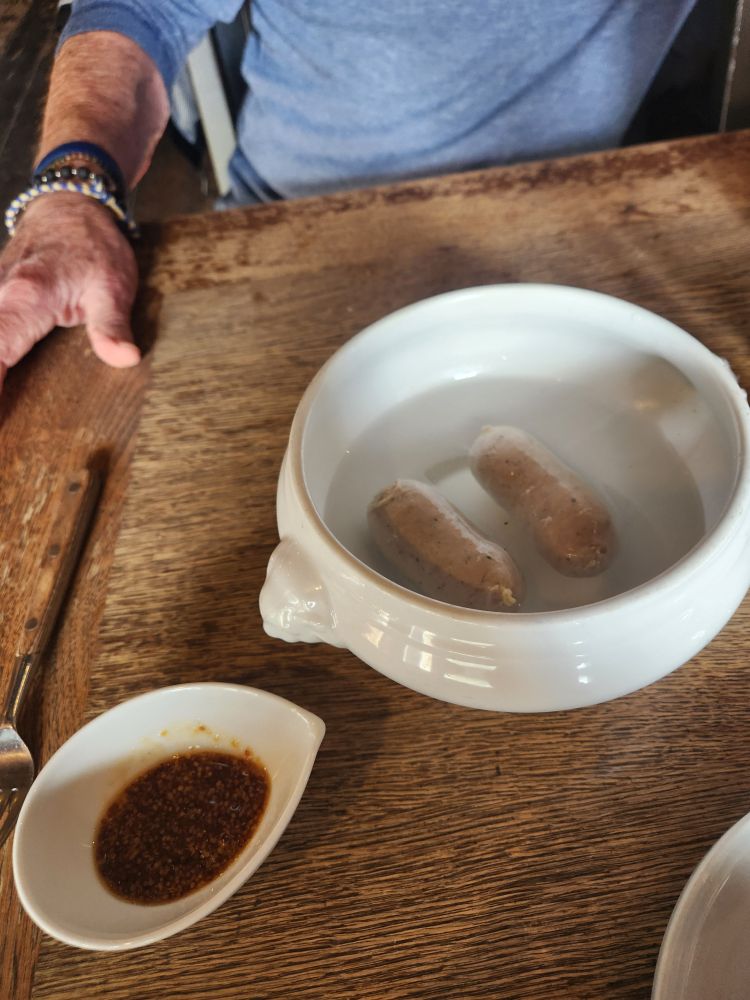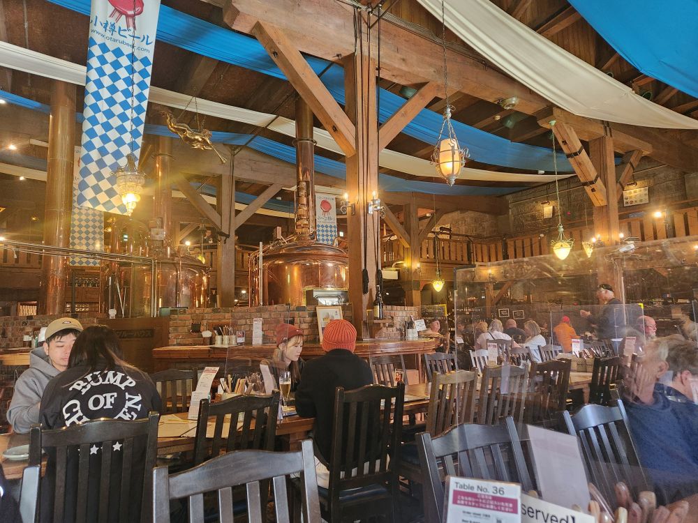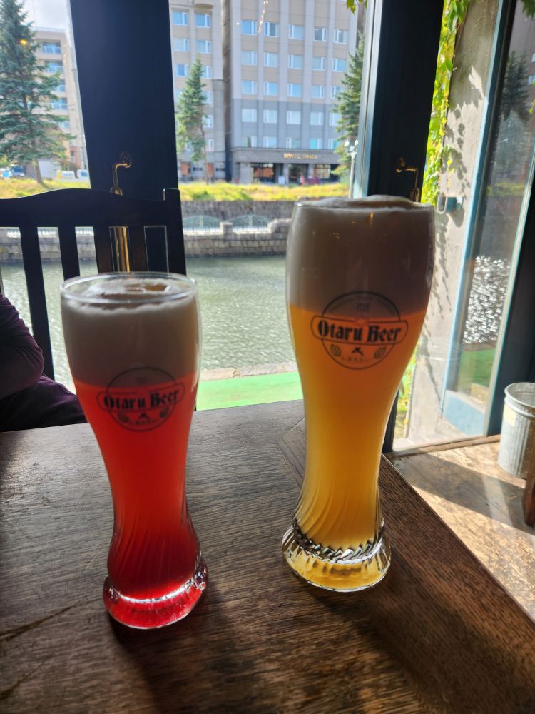 From there, we decided we wanted a drink, so we walked along the other side of the canal to the local brewery, Otaru brewery. We were only going to get a beer, but they had some great snacks and ended up ordering this thing called bridge bread. It was this mini loaf of bread that they made into a bridge shape and stuffed it with mozzarella and I don’t know, grilled? Accompanied with an awesome garlic butter sauce. It looked so cool – and it tasted so good. We also went with the German theme and ordered some Munich White Sausage (when in Germany, oh, I mean Japan…) which were tasty as well. The beer was good too – I ended up with a raspberry beer that was described as being very popular with the women. Okie dokie! Well, it was popular with me! Ed went with the standard Weiss and we were both happy. Even though it was really westernized, it was still fun.