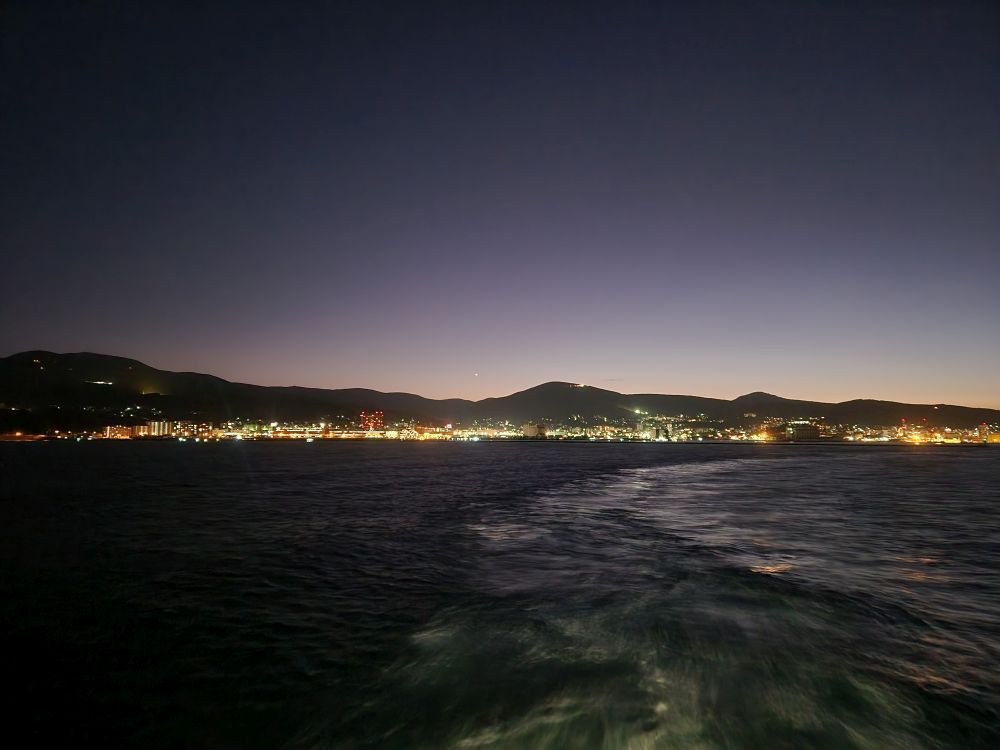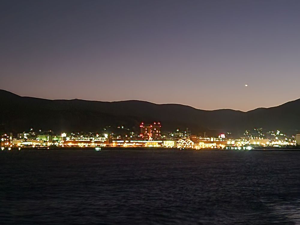 By the time we finished, it was about three o’clock and we decided it was time to go back to ship, which is what we did! The rest of the afternoon was spent as usual – gym, drinks, balcony for sail away shots in the early dusk, then dinner in the Lido. It’s Asian night! We cannot pass up Asian night. Sushi and pot stickers and spring rolls. And then we can sample the fish from the main dining room – but small portions of each so we can try them all. Oh – and this awesome parmesan fried zucchini! If we were in the restaurant we’d have to order 4 entrees just to get a taste – this way we just ask for one small piece and it is like grazing. Yummo.