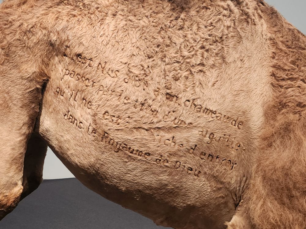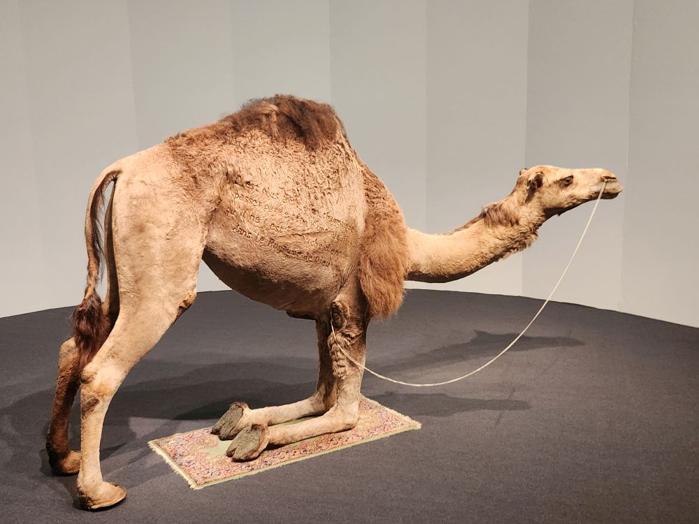 In terms of wacky art museum – this one takes the cake! Let me tell you. Celebrating 25 years as the first museum to specialize in modern and contemporary Asian art, it is filled with the most imaginative, yet totally bizarre, exhibits we have ever seen. Starting with Camel, by Huang Yong Ping, which depicts the scripture from Matthew, “It is easier for a camel to go through the eye of a needle than for a rich man to enter the kingdom of God,” in the form of a life-size camel kneeling on a Muslim prayer rug with a needle through its nose. Along with the scripture quote, in French, inscribed in its fur. Uh huh.
