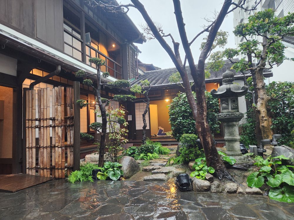 Our next stop was what I had thought would be the highlight, the Hakata Machiya Furusatokan Folk Museum, that showcases the culture and daily life of Fukuoka city in the Meiji and Taisho periods. They have hands on exhibits and papier mache painting and different craft type things. Well, not so much! First of all, this is where the ship tours are, and it is packed. Second of all it is pouring again, and most of the cultural displays are in the form of different residential buildings of old. Meaning small, long and narrow wooden houses with one center hallway, packed with people. Ugh. We ended up walking through one of the houses, then sitting outside under the roof eaves in their Japanese garden while the rain poured down, watching the antics of the other cruise ship passengers! That was entertainment in and of itself.