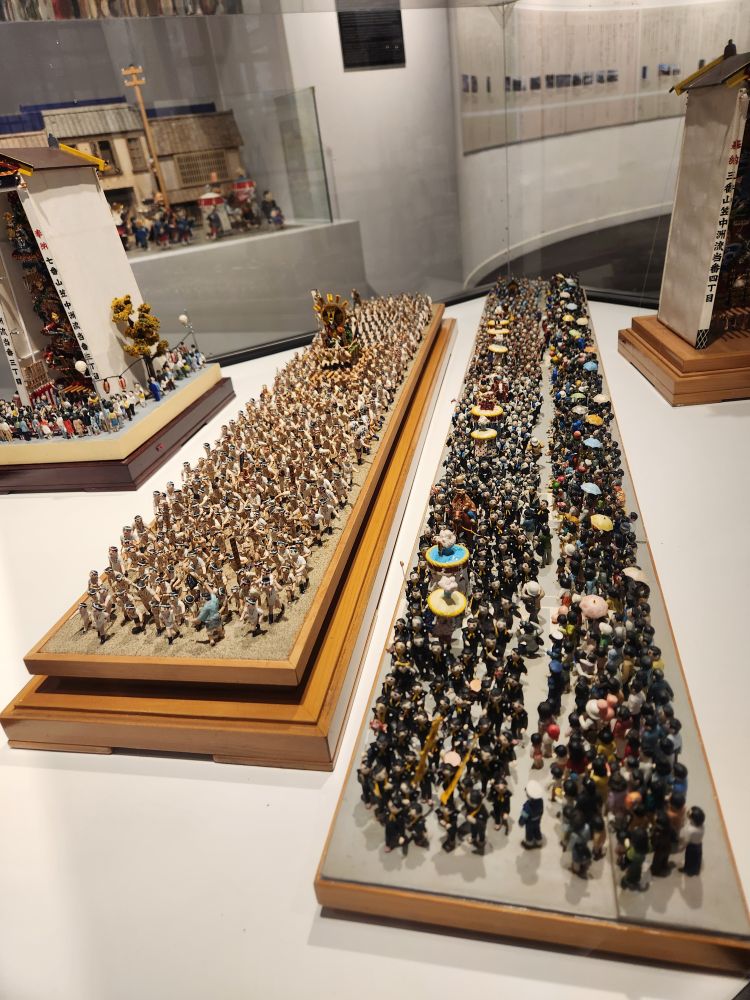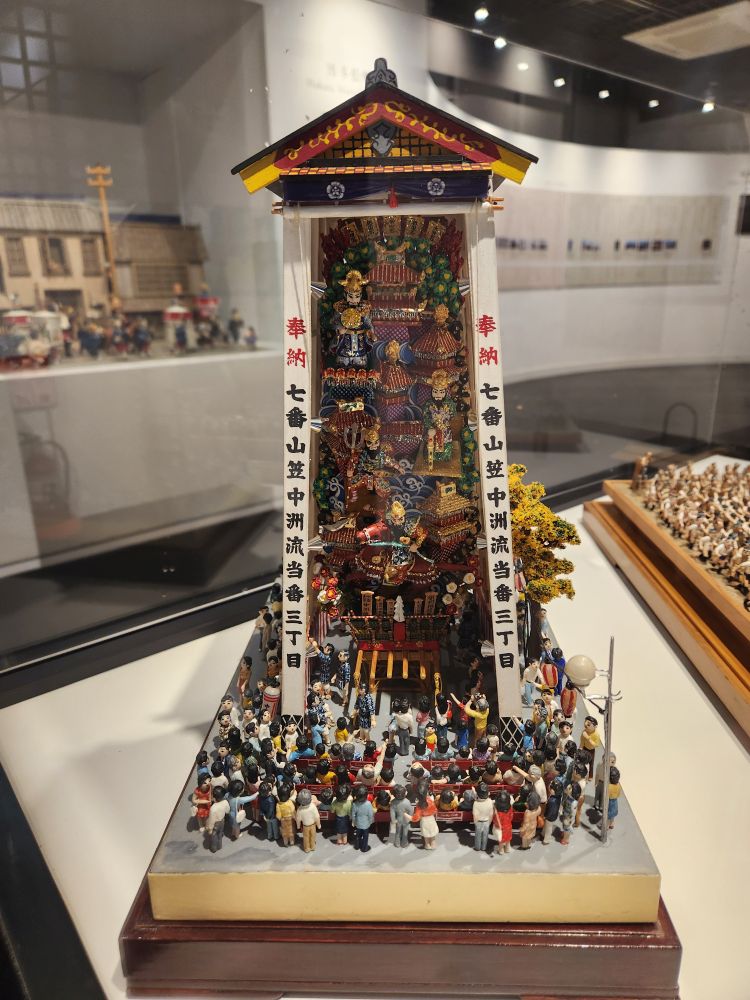 The museum experience is saved though, as there are many more interesting cultural exhibits on 3 levels in a more modern building next to the old houses. We had timed it right so that most of the tours were leaving and had the place pretty much to ourselves (except for a few people who knew they needed to leave for their tour but didn’t! Uh huh, ship tours!). One level is completely focused on the Hakata Gion Yamakasa festival with awesome miniature models of the people participating as well as the floats, plus great video about the festival in Fukuoka. These people are definitely festival crazy! It’s amazing.
