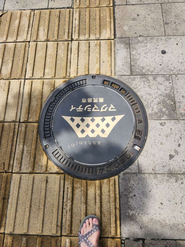 Culture done – it’s time for lunch. Traveling through the streets of Kagoshima, looking at all the different – old and new – architecture and finding yet another manhole cover, we make our way toward the area known as “gourmet street” only to find it was mostly bars and nothing much was open.