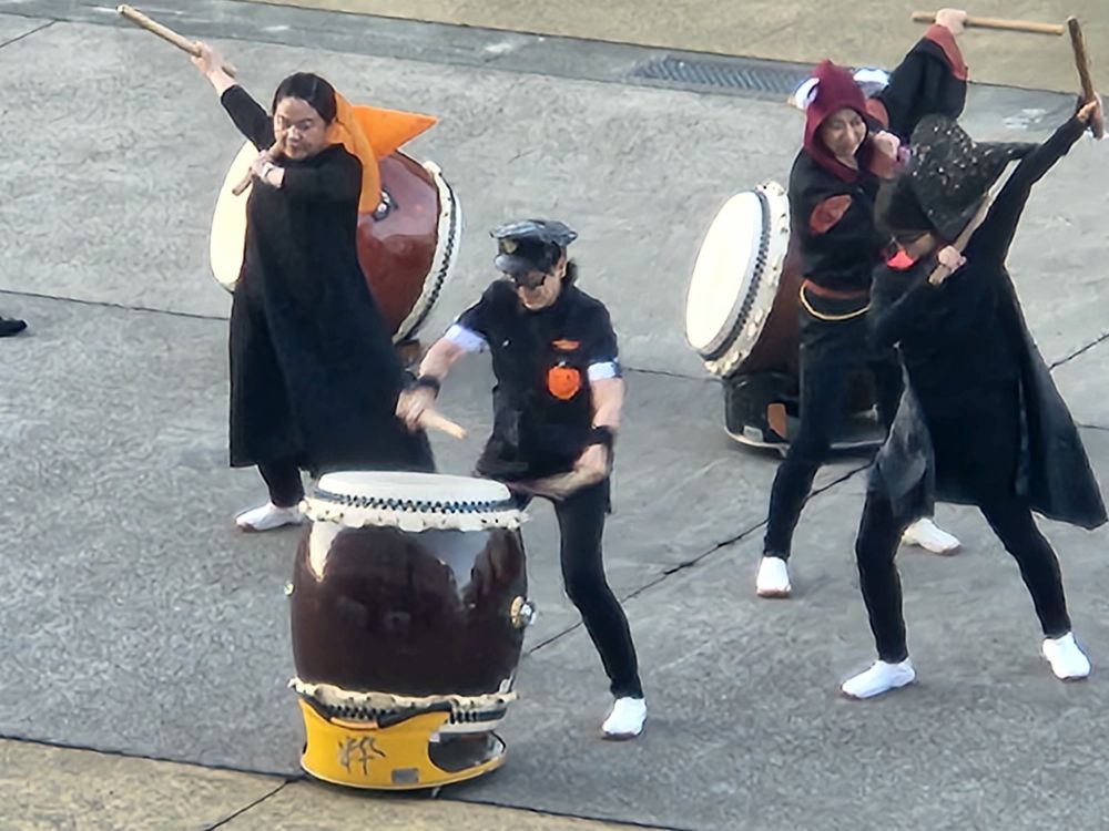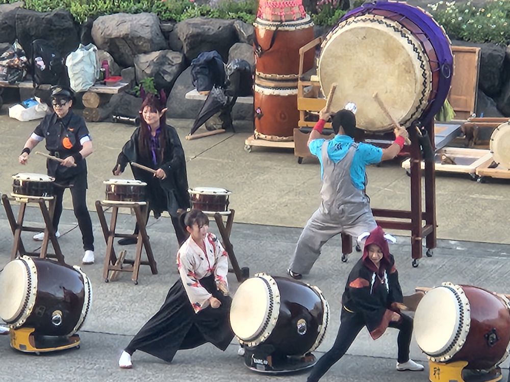 The farewell performance is wonderful – even if they are all dressed up for Halloween, oh what we have wrought on the world! Besides that though, the performers are amazing with their drums. Drumming from the ground, Precision drumming , how do they synchronize so well? Drumming, drumming and more drumming – finishing with a sort of drumming circle where everyone takes their turn in perfect synchronization . Great show. We love watching them all – and the most adorable little 5 or 6 year old with the huge camera down there with his dad (who also has a camera) taking pictures. So adorable!