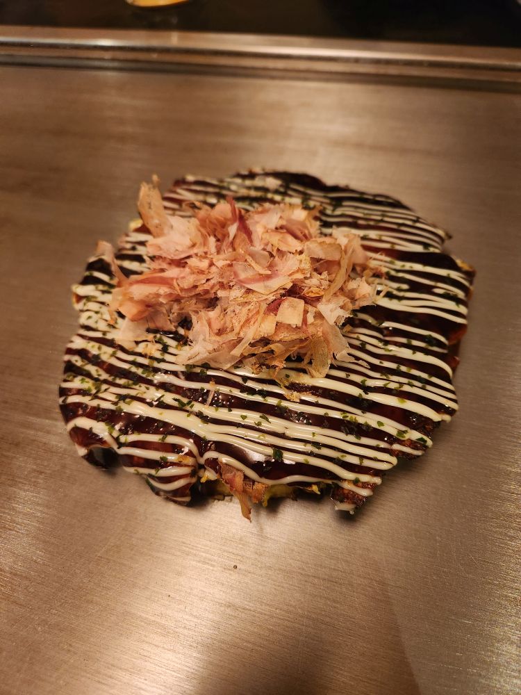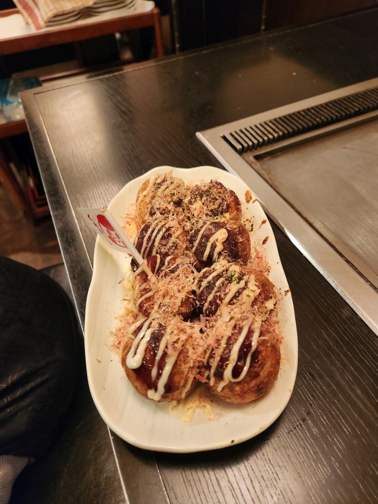 Getting on time for lunch – how could we eat again? Takoyaki and Okonomiyaki is how we can eat again! We found a great restaurant with a Takoyaki exhibition stand out front (where we saw Byron and Kelly, our stalker Canadians who we know see everywhere) and a huge menu that includes my favorite as well – Okonomiyaki. Game on! We are seated at a great little table downstairs (lucky table #7) in a room all by ourselves (turns out most people want to be in the room that fronts the canal – we don’t care!) and order our favorite foods! The best! The Takoyaki is huge, fresh, big pieces of octopus and of course looks like it is alive with the bonito flakes on top. The Okonomiyaki is perfectly cooked with all the excellent sauces – and kept warm on the hot griddle. Yay – cravings complete!