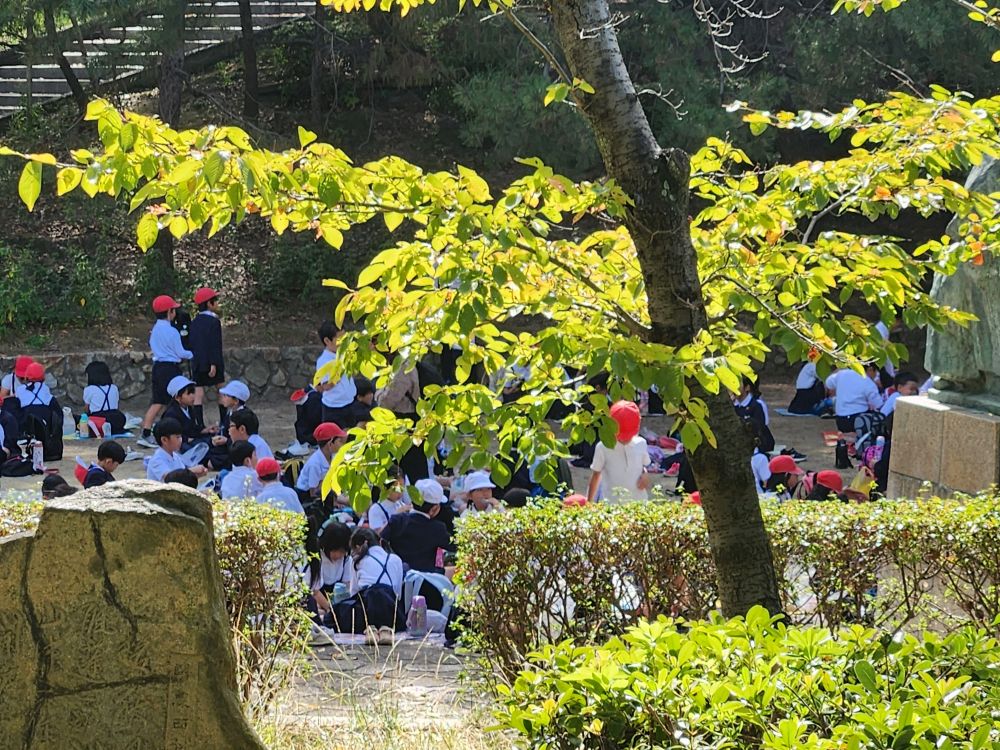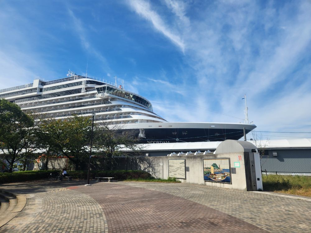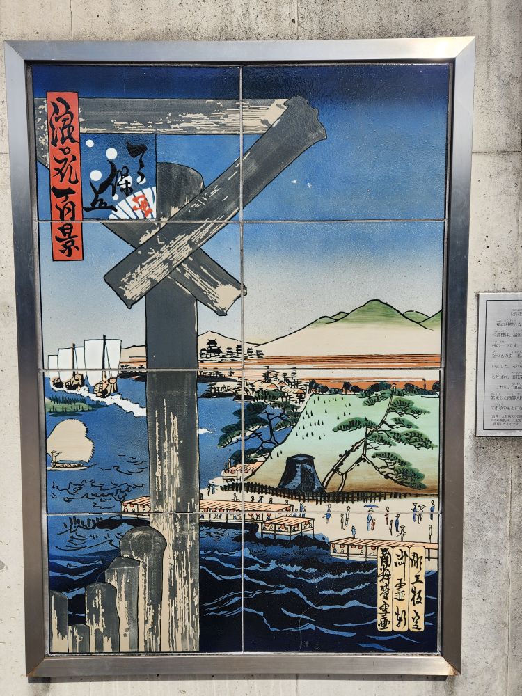 Back to the subway we go, back to the ship, with a diversion to a little park at the end of Tempozan we never knew existed. Probably for a reason. What could be a lovely little park is what we are calling the park that Tempozan forgot. While there is lots of green surrounding some nicely tiled open spaces, everything is overgrown and just run down. Totally un-Japan-like. Just weird. There are great statues and beautiful tiled murals and a fabulous view of the ship. The entry sign talks about how the park has been a landmark guiding ships into the port and how it attracts lots of people for the cherry blossoms when in season. We just hope they do a little clean up and landscaping before cherry blossom season! It is a nice little interlude in great weather – and filled with more school children eating their lunch – so nothing wasted, but still.
