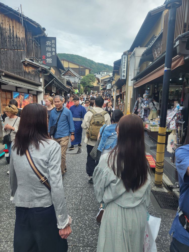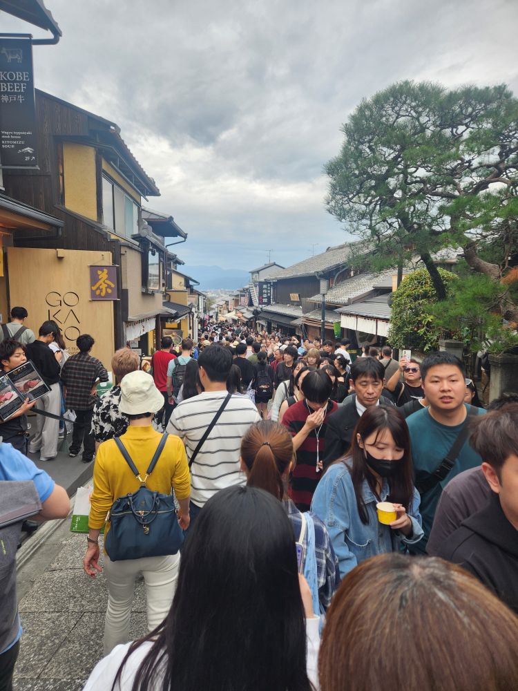 Settling in, we review our planned itinerary here in Kyoto. Not happening! Every place we planned to visit are on the top lists of every other tourist in the area, and judging from today? We will not be happy campers. We had read about the overcrowding and over-tourism here in Kyoto, but hadn’t really experienced too much of that last year when we visited. Yes, places were crowded, but not like today! Obviously it has gotten so much worse. A huge problems are the local buses, they are so overcrowded it isn’t funny – we watched them go by today and if there are 40 seats on the bus, there are probably 100 people on it. Sardine city. We had read about the bus problem too, because the city has been trying to figure out what to do with the over-tourism and the fact that buses are the #1 way for locals to get around. Sigh. We know we are part of the problem – and the pot calling the kettle black and all that – but still! We know the problem! We don’t add to it. Ok, rant done.