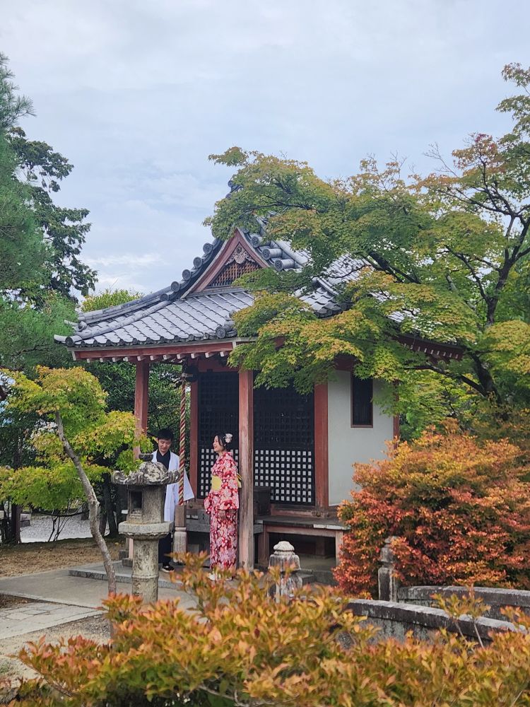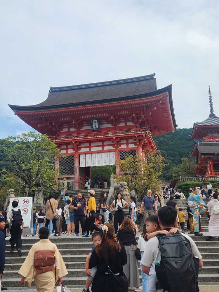 Turning back toward the complex, there are some nice little shrines, lots and lots and lots of tourists in their rented kimonos and, well, just lots and lots of tourists interspersed with some decent views of the temples. Arriving at the ticket booth – we look out along the walkway to the far temple with the views, and nope. We just looked at each other and said – ABORT! Not worth it.