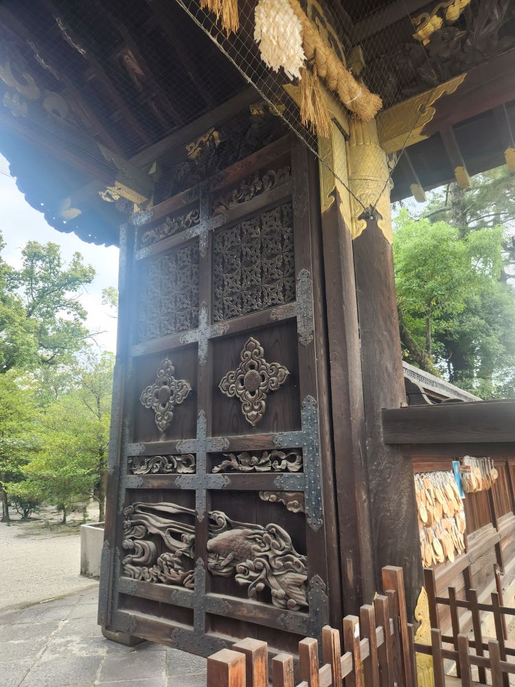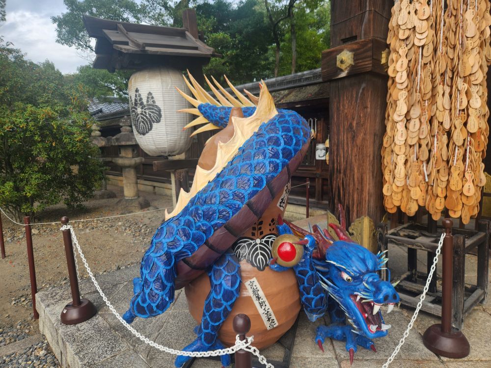 Looking at the map, we figured we could walk back to the station from here – we had time – and we could make stops along the way. Heading toward the National Museum, we made a quick stop at the Hoko-ji temple, but didn’t manage to see the enormous bell somewhere on the property. We did have fun with the artistic dragon at the entrance though.