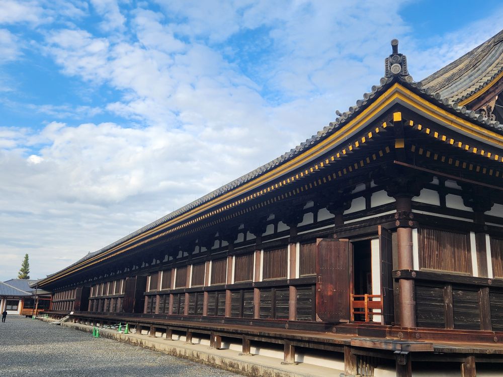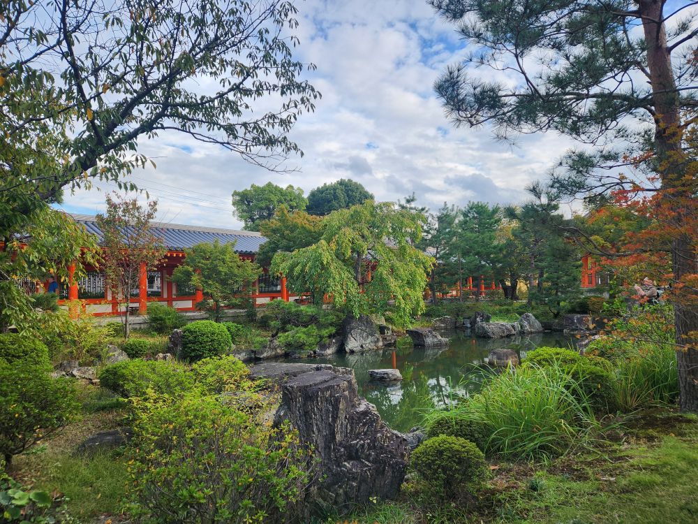 Heading onto the museum, which was enormous, we decided we didn’t have enough time to do it justice and make our 4:30 pick up time, which was actually a blessing in disguise. Instead, we went across the street to Sanjusangen-do temple. Probably one of the best Buddhist temples we’ve visited! First of all there is a lovely garden area lined with temple buildings and the iconic red paint – which made for great pictures along the little pond.