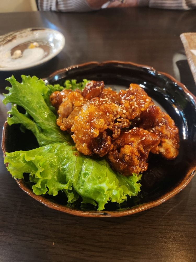 They’ve got everything you could want – including wine, which can be hard to come by here. We have a very satisfying meal of mixed tempura and Korean fried chicken, along with some oddly good tofu snack thingies that arrive with our drinks. It’s quiet and clean and perfect for our first meal here. And the chopstick holder says it all! “Yummy” is right!