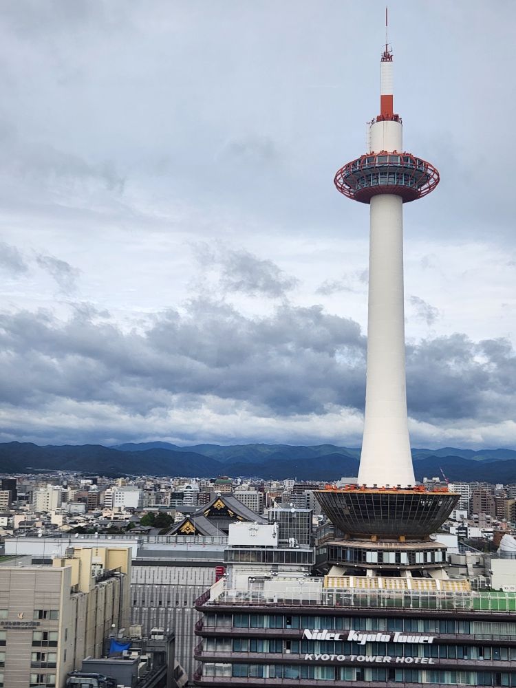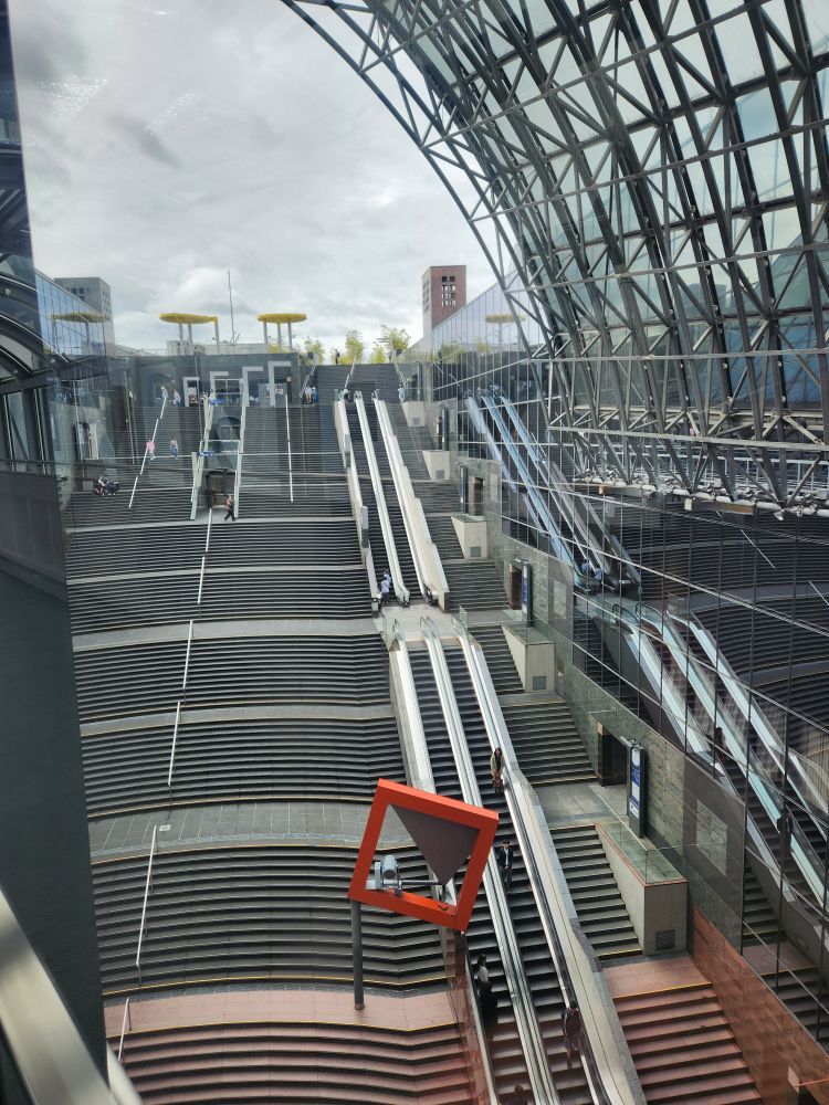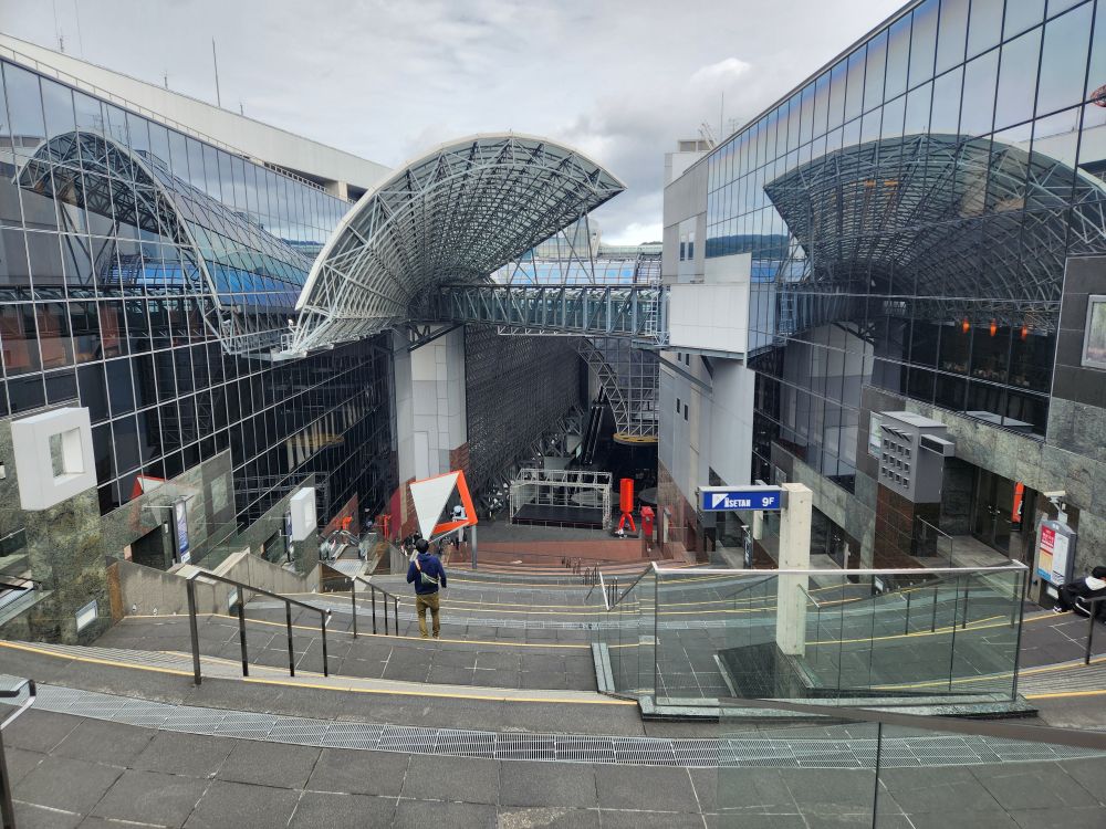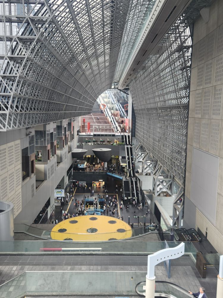 After lunch we wandered around the station. And what a station it is! 2 huge malls, 11 stories high, huge escalators, plus a massive sky bridge with views of the Kyoto tower and out to the mountains. A marvel of engineering – and so futuristic.
