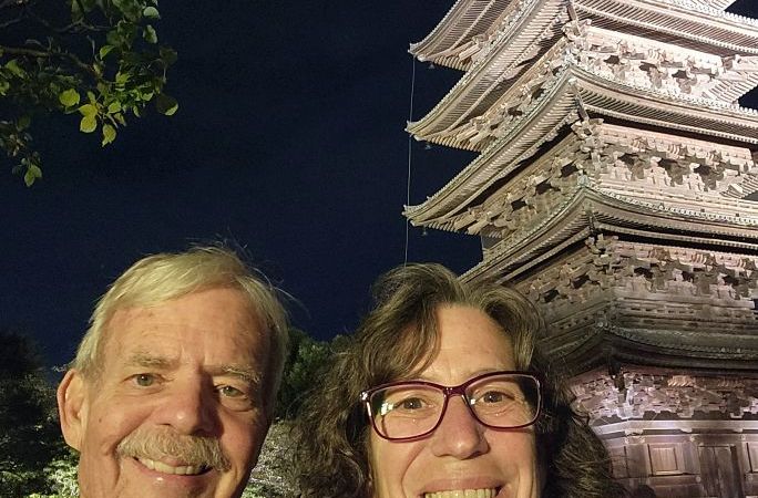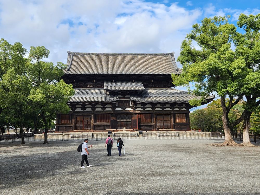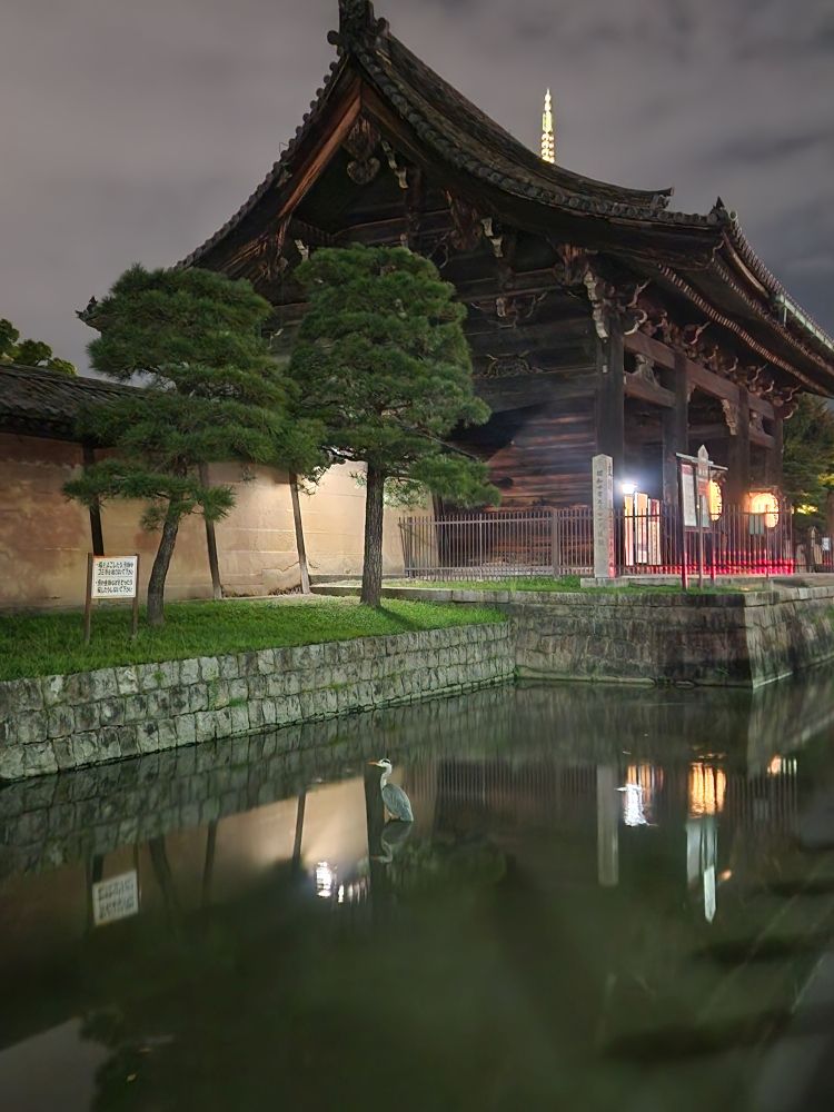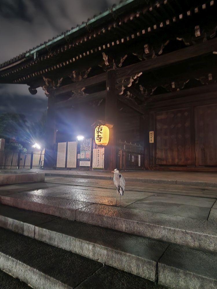 As we entered the South gate, we spied a beautiful Heron sitting on the banks of the moat, watching us. Our talisman everywhere we go! Also as we entered, we noticed a poster for night time lights at the temple – every fall many of the temples open at night with lights on the foliage, most though don’t do this until November. We are lucky that the To-ji temple has a much longer lighting schedule, and while we are a little early for the true fall colors, we figured we can’t miss it and planned to go back in the evening too.