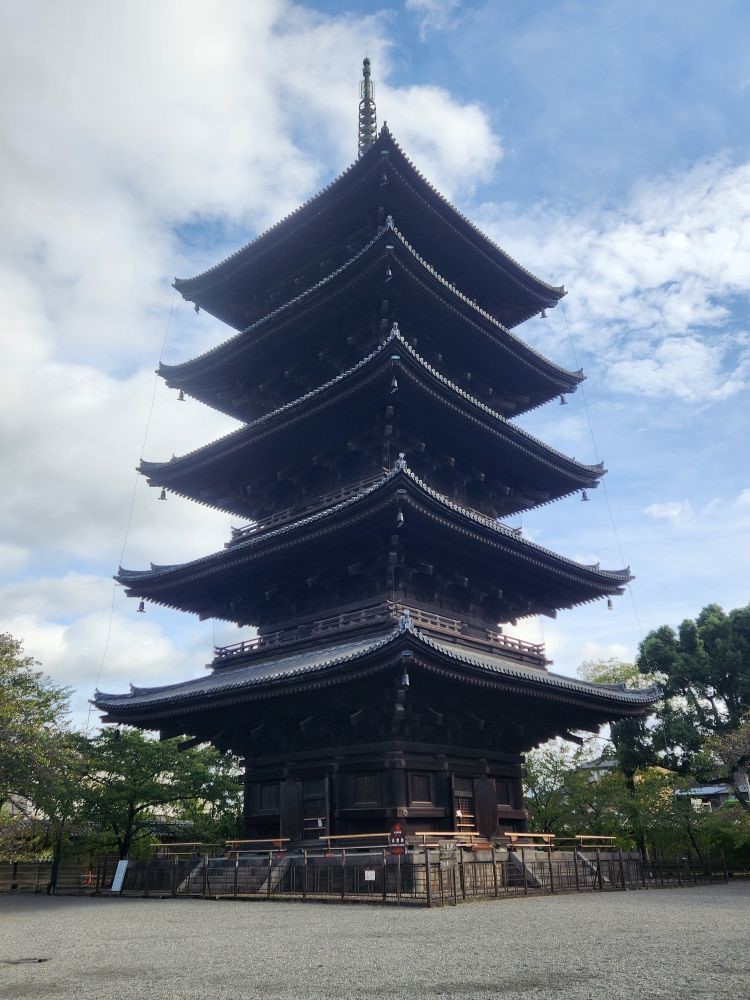 On the way, we passed the To-ji temple, which is only a couple of blocks from the house. It was one of 2 original temples built when the capital of Japan moved from Nara to Kyoto. To-ji means East – thus it is the East Temple. The West temple that was built was destroyed, so this is all that remains. The 5 storied pagoda is the largest in Japan. And there wasn’t hardly anyone there! Bonus!!!
