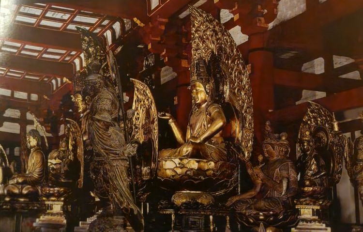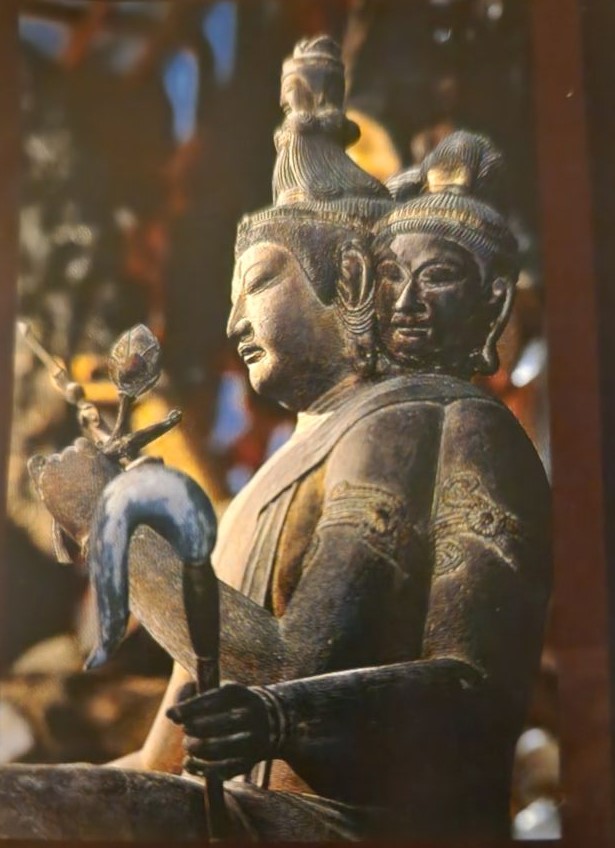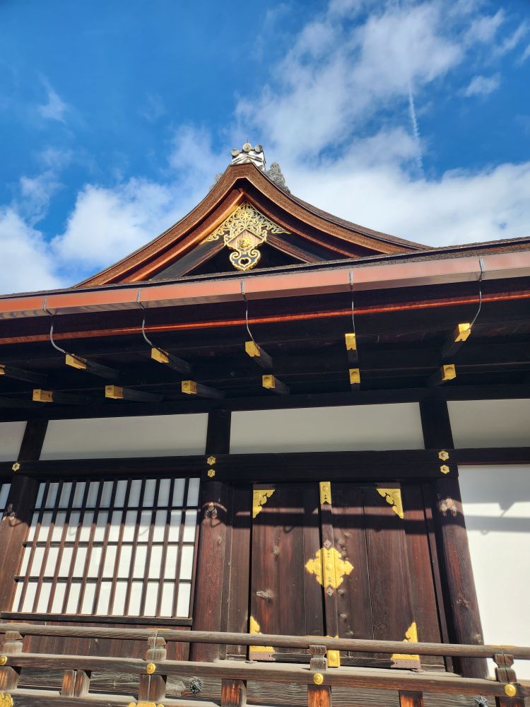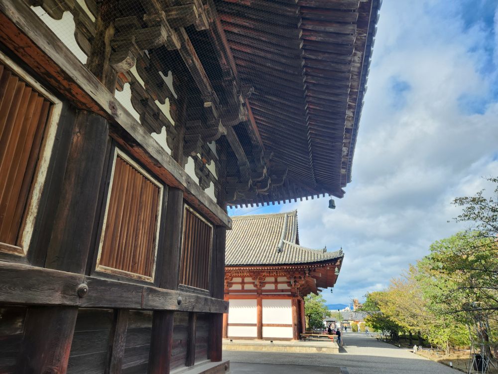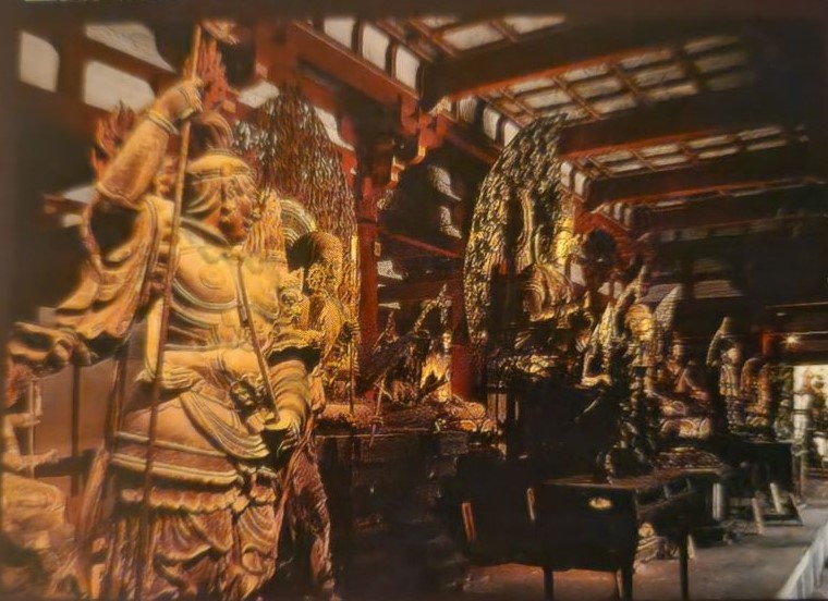 We can enter the Kondo (main hall) and the Kodo (lecture hall) although no photos are allowed. But of course, there are the brochure photos….The Kondo is the largest structure in To-ji. Originally built in 1486, reconstructed in 1603 after burning down (there is definitely a fire issue here!). There are 3 relics inside – The Yakushi Nyorai known as the Buddha of Medicine in the middle with his two attendants – the Nikko Bosatu (the Bodhisattva of the Sun) and the Gakko Bosatu (the Bodhisattva of the Moon) – on either side. Massive, golden, ornately carved. They are beautiful and peaceful to behold.